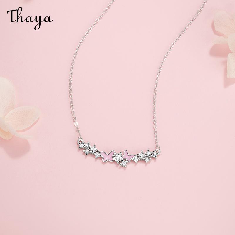 This charming necklace features a delicate design of butterflies and sparkling cubic zirconium oxide stones. The butterflies are delicately colored, adding a touch of whimsy to the piece.