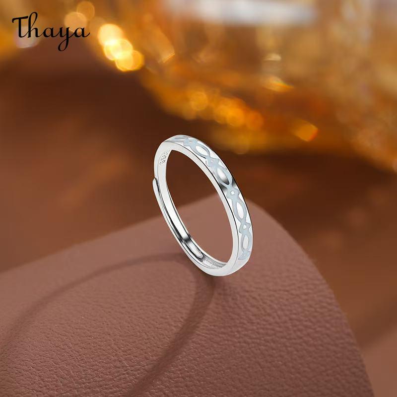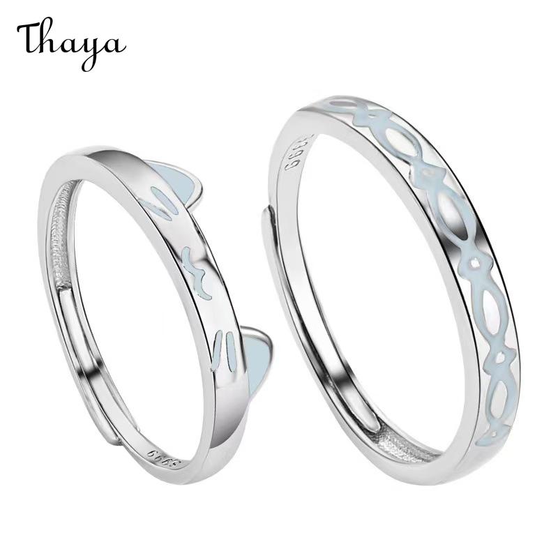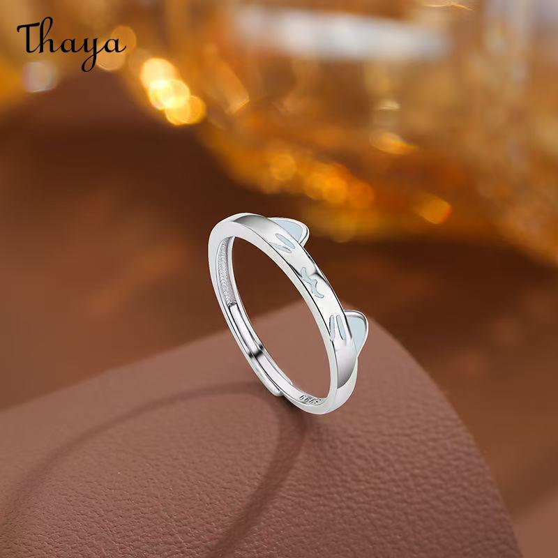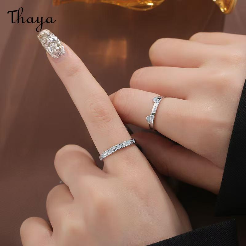 These charming rings feature a simple yet elegant design. One ring is adorned with subtle cat ears, while the other showcases a pattern of intertwined shapes, both with a unique luminous effect that glows in the dark.