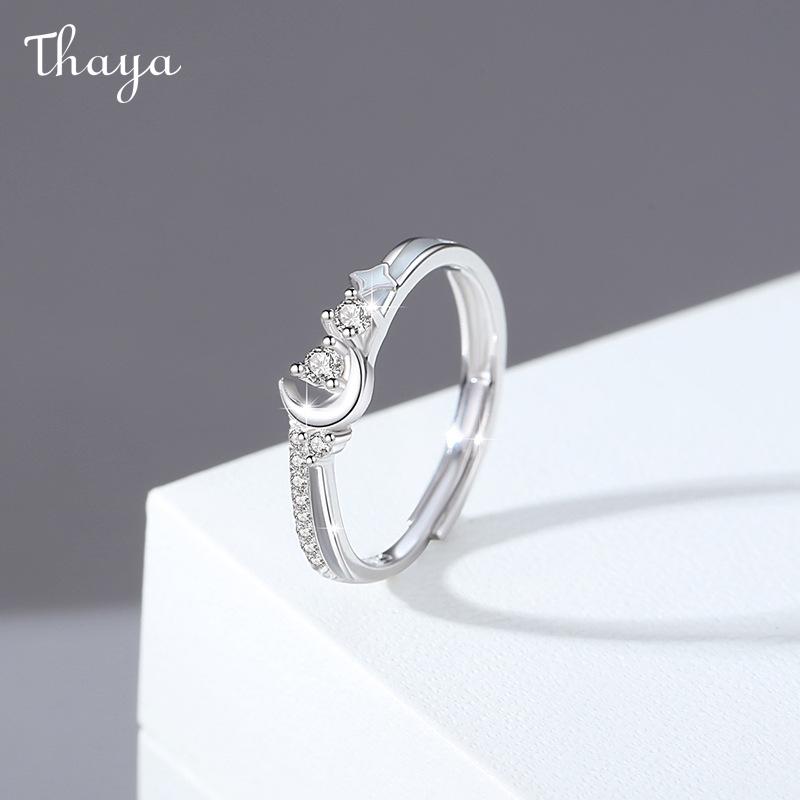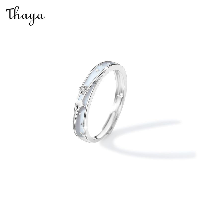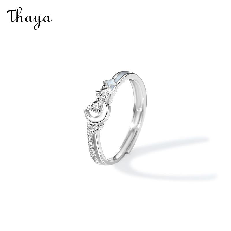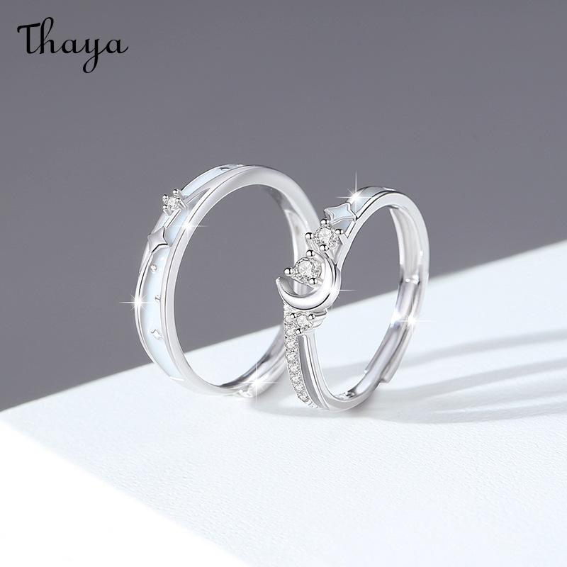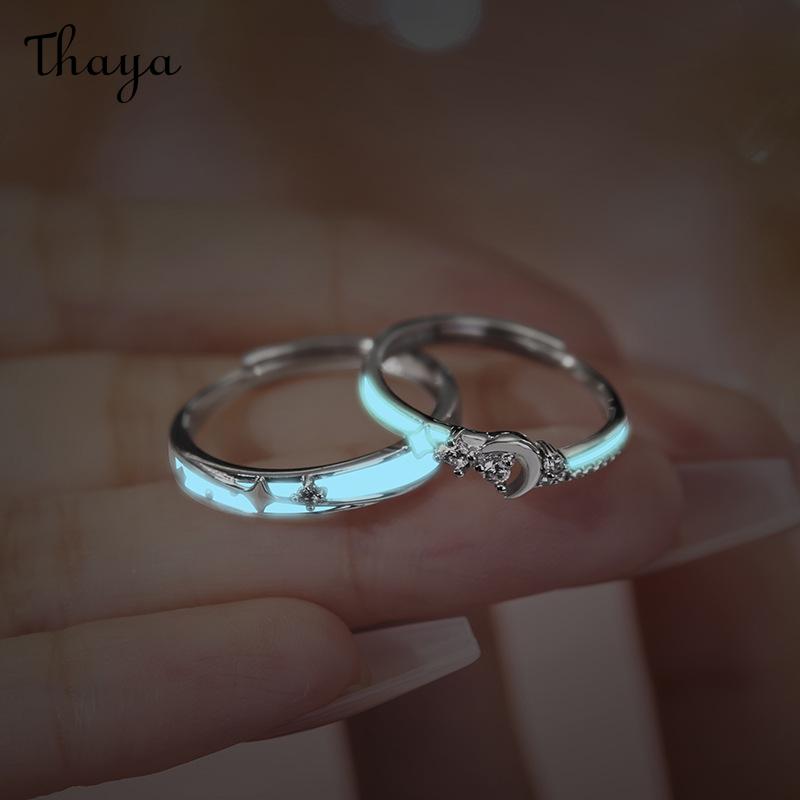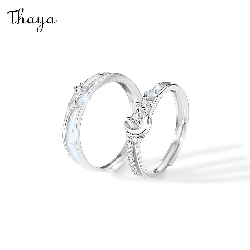 Thaya S925 Silver Luminous Starry Moon Night Couple Rings