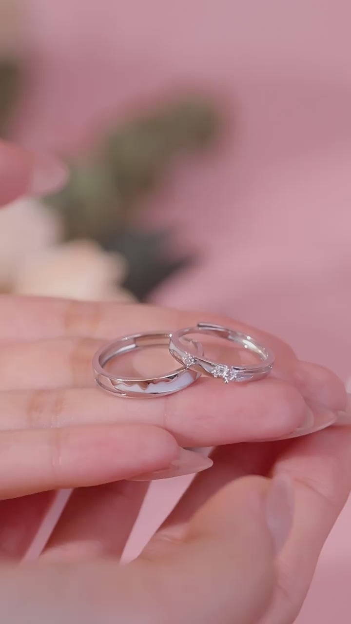 This set features matching couple rings with a unique mountain and river design. The rings glow in the dark, adding a touch of magic to your bond.
