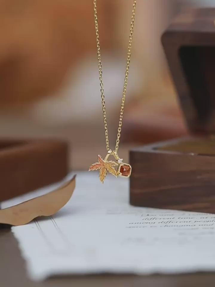 Capture the beauty of autumn with this delicate maple leaf necklace.