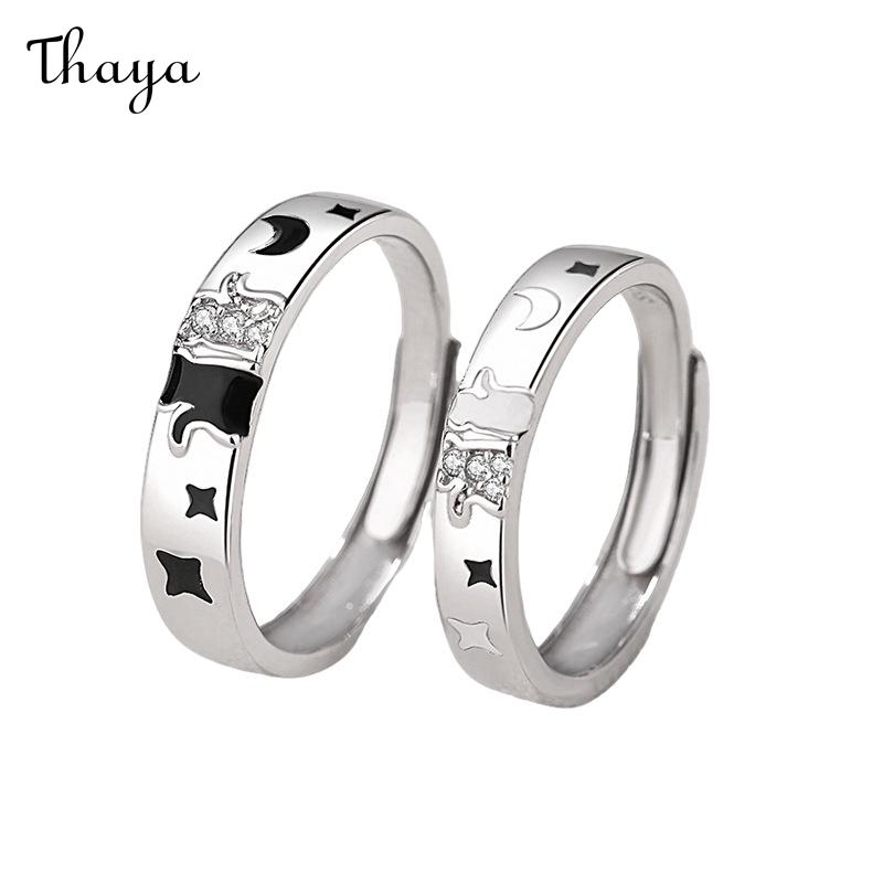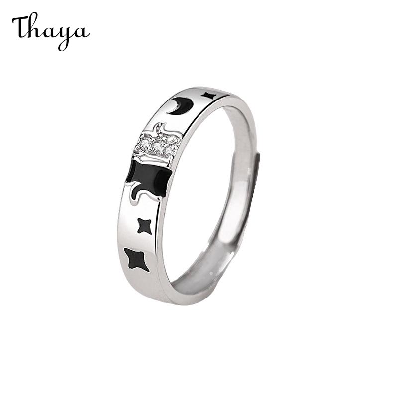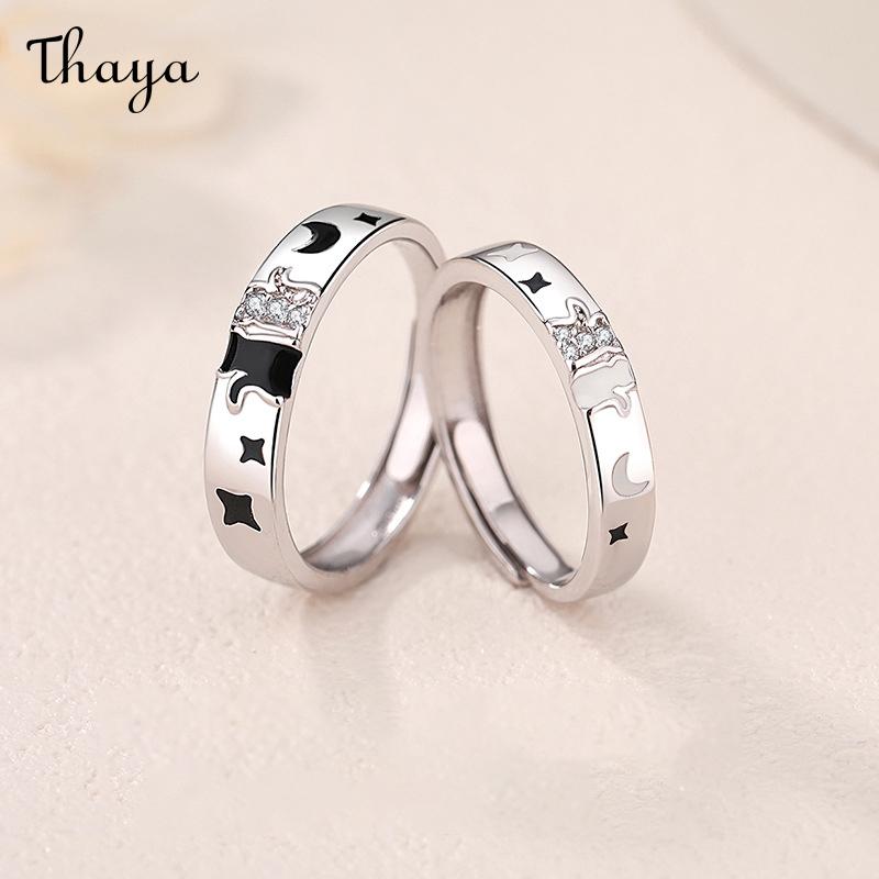Express your love with these adorable matching cat couple rings. Featuring a charming black and white design with cute kitten silhouettes, these rings symbolize closeness and affection.