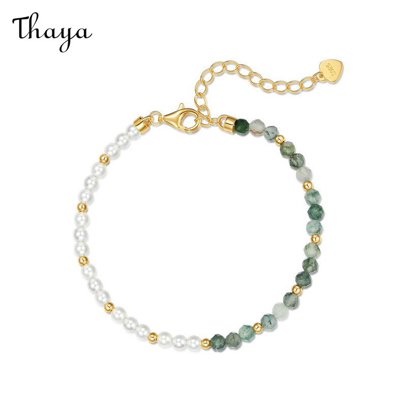 Thaya S925 Silver Pearl & Green Moss Bracelet