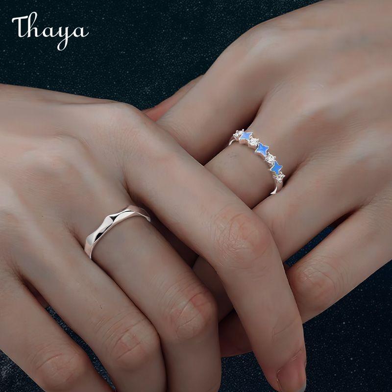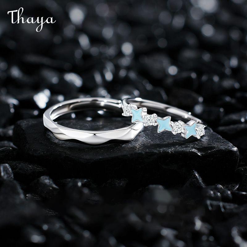 Thaya S925 Silver Luminous Starry Night Couple Rings