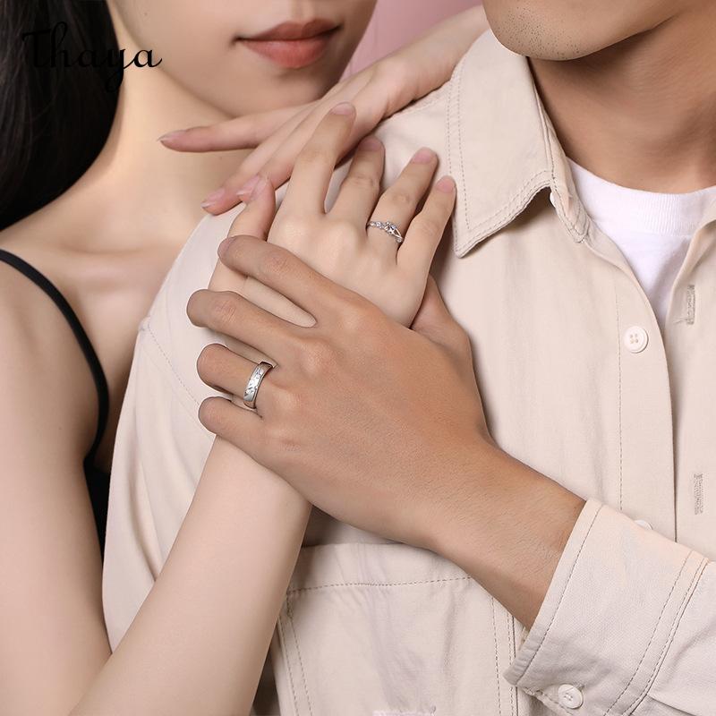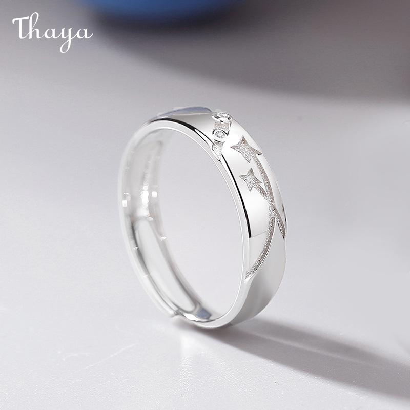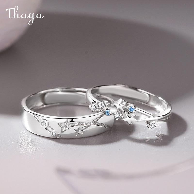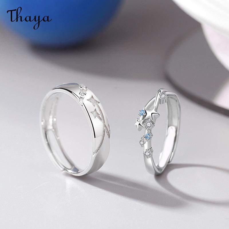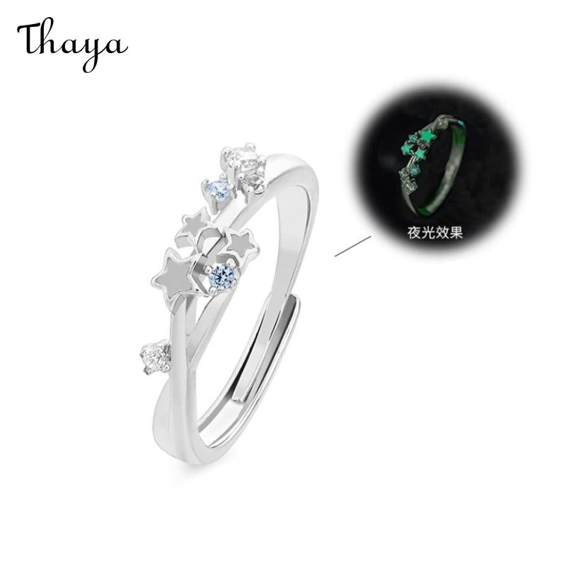 Thaya S925 Silver Luminous Starry Rings Couple Set