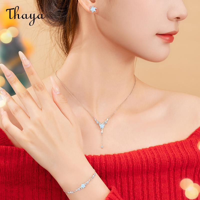 Thaya S925 Silver Christmas Tassel Star Collarbone Chain Necklace Bracelet Earrings