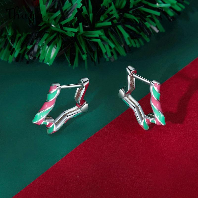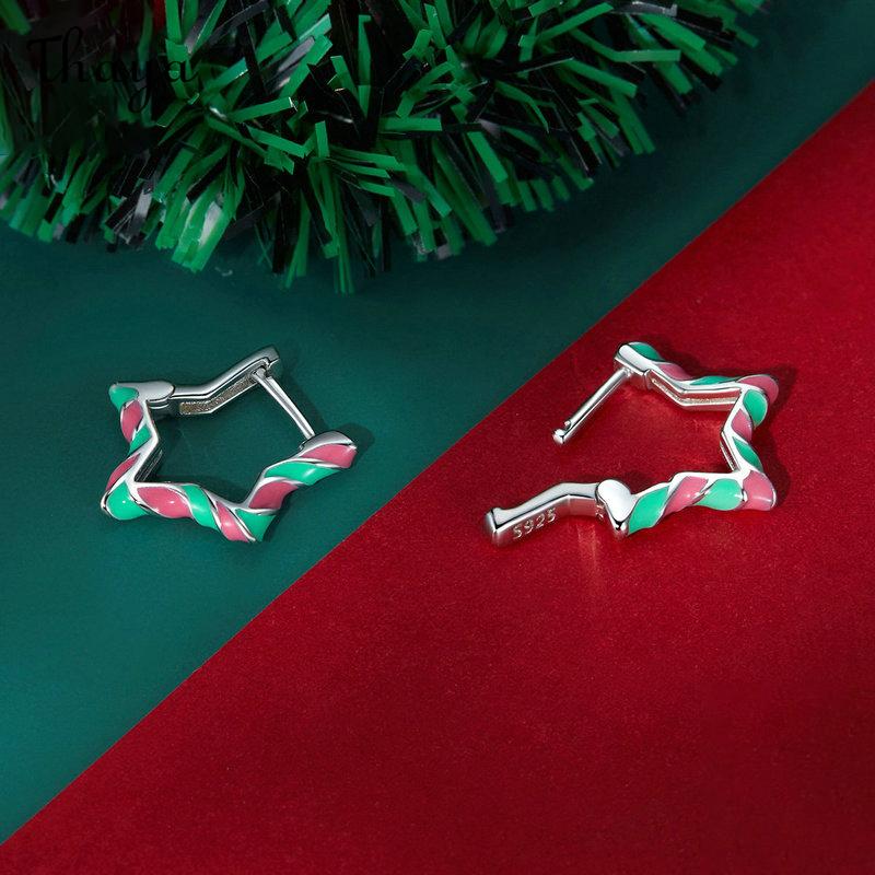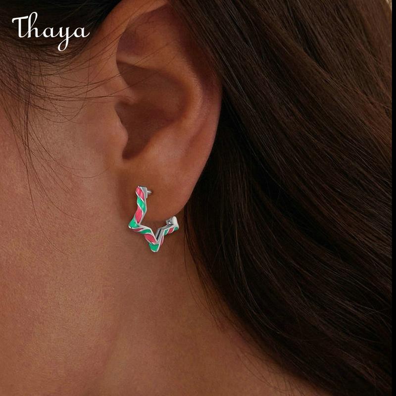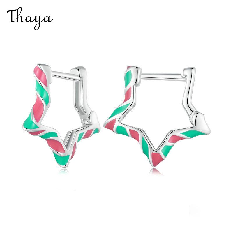 Add a touch of whimsy to your style with these charming star-shaped earrings. Each earring features a delicate star outline, adorned with a playful combination of pink and green enamel stripes.