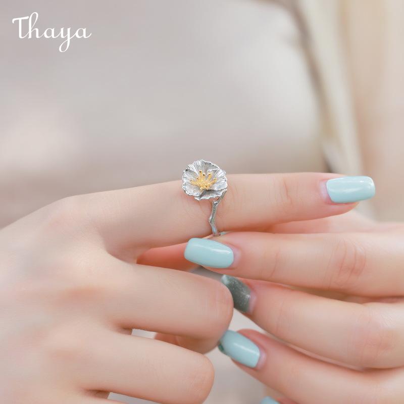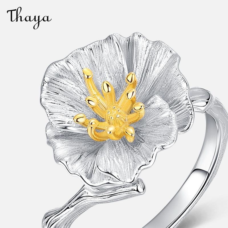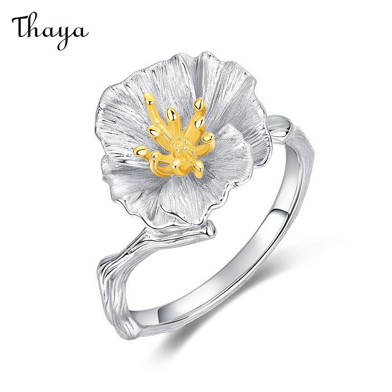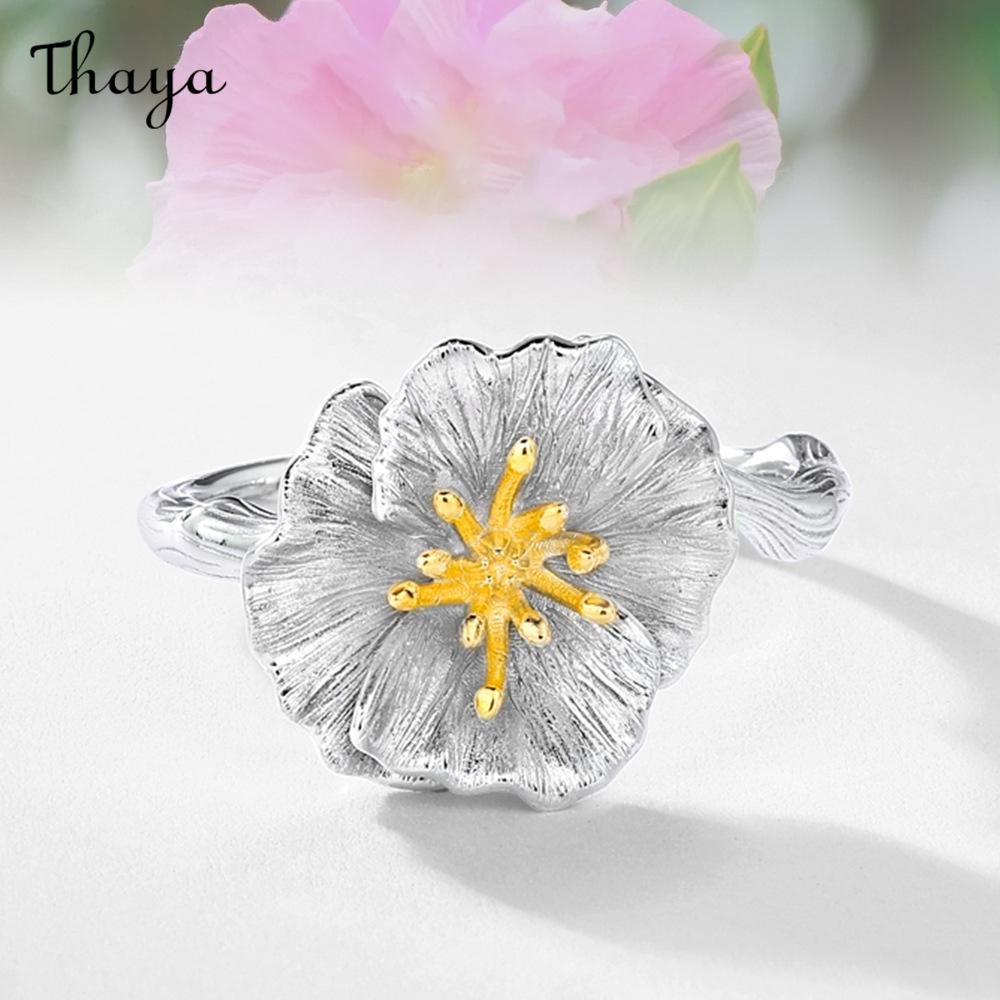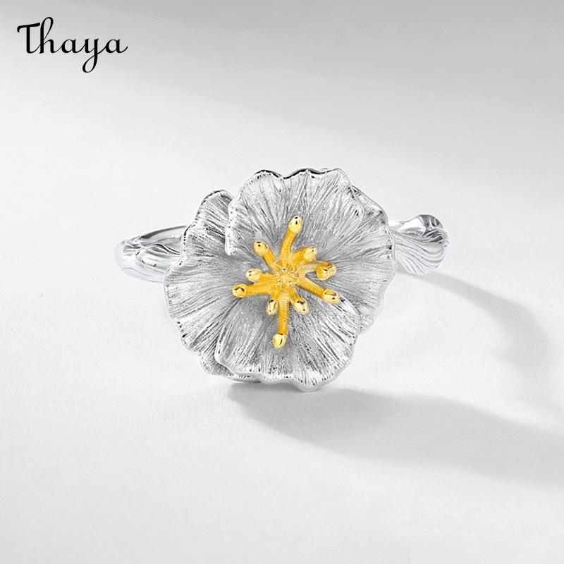 Thaya S925 Silver Hibiscus Flower Ring