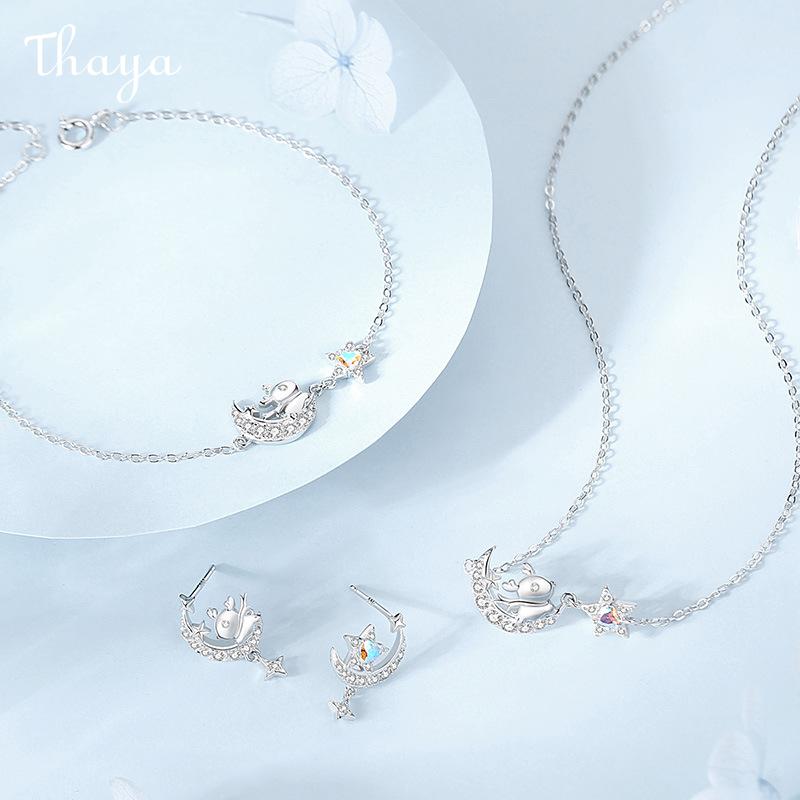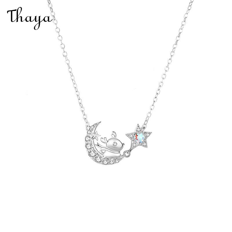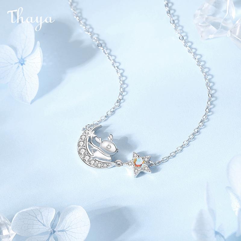 Thaya s925 Silver Christmas Elk Moon Necklace