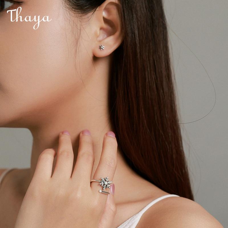 Thaya S925 Silver Snowflake Earrings and Ring Set