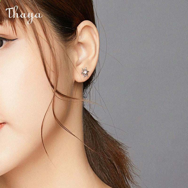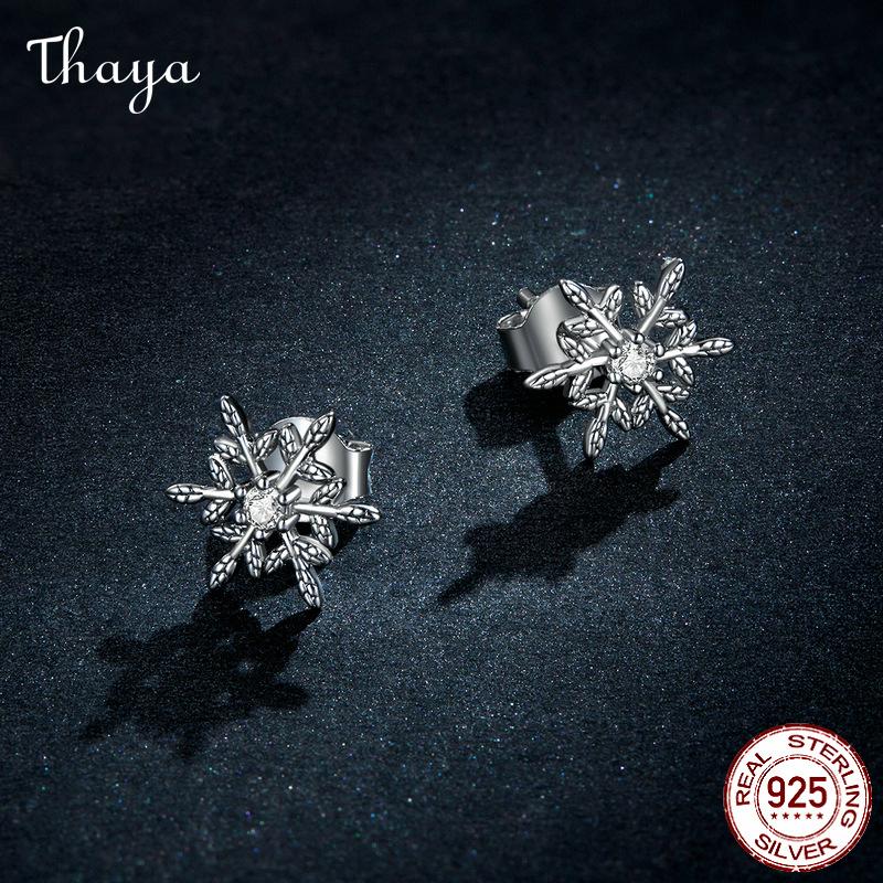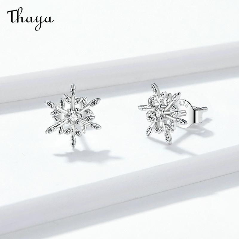Thaya S925 Silver Christmas Platinum Plated Snowflake Stud Earrings