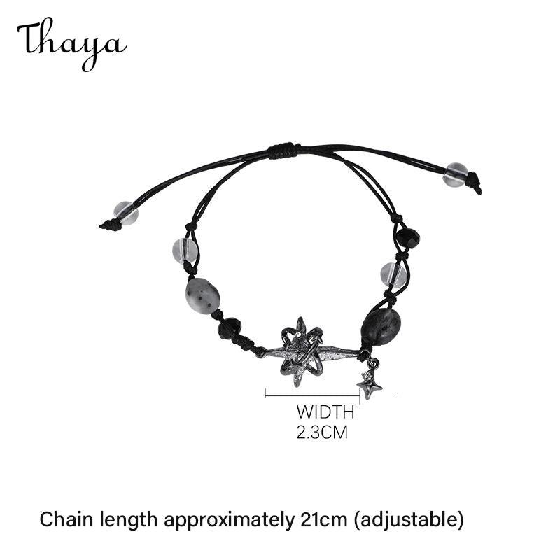 • Bracelet: The bracelet is adorned with similar beads and a star charm.