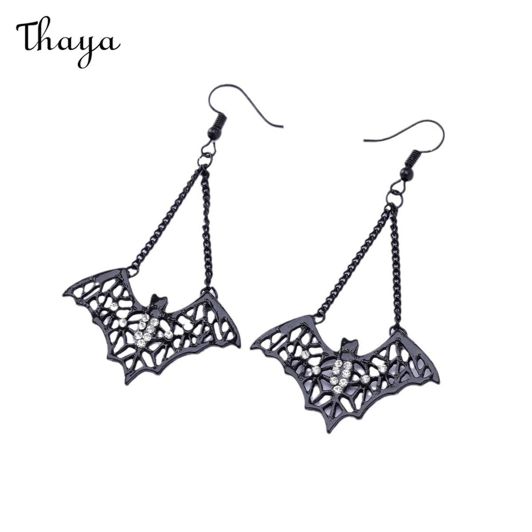 Thaya Dark Gothic Exaggerated Red Water Drop Bat Earrings