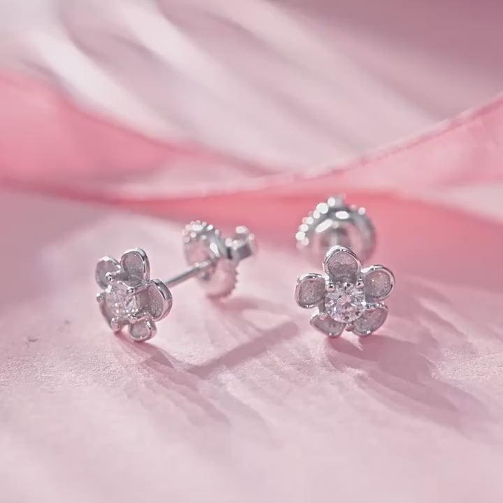 Boucles d'oreilles chics en argent 925 Thaya en forme de fleur de cerisier