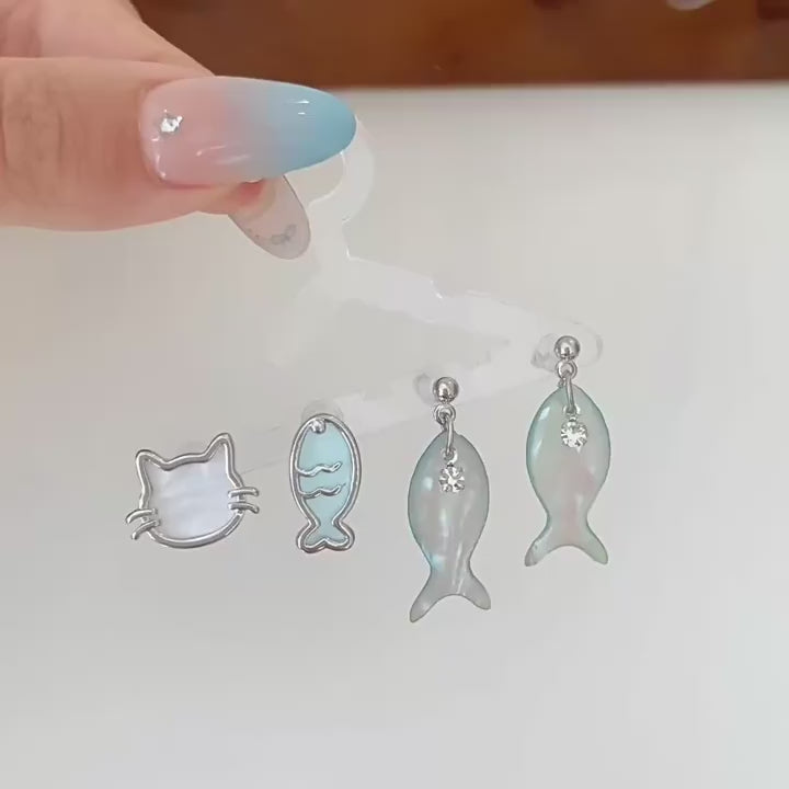 These adorable earrings feature a whimsical design, perfect for adding a touch of sweetness to your summer style. Choose from cute cat and fish charms.