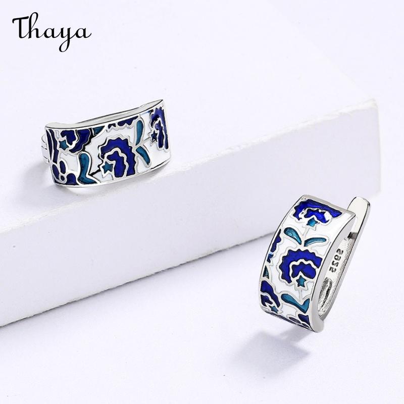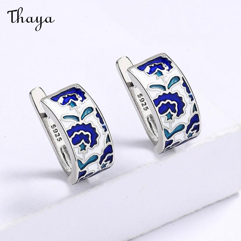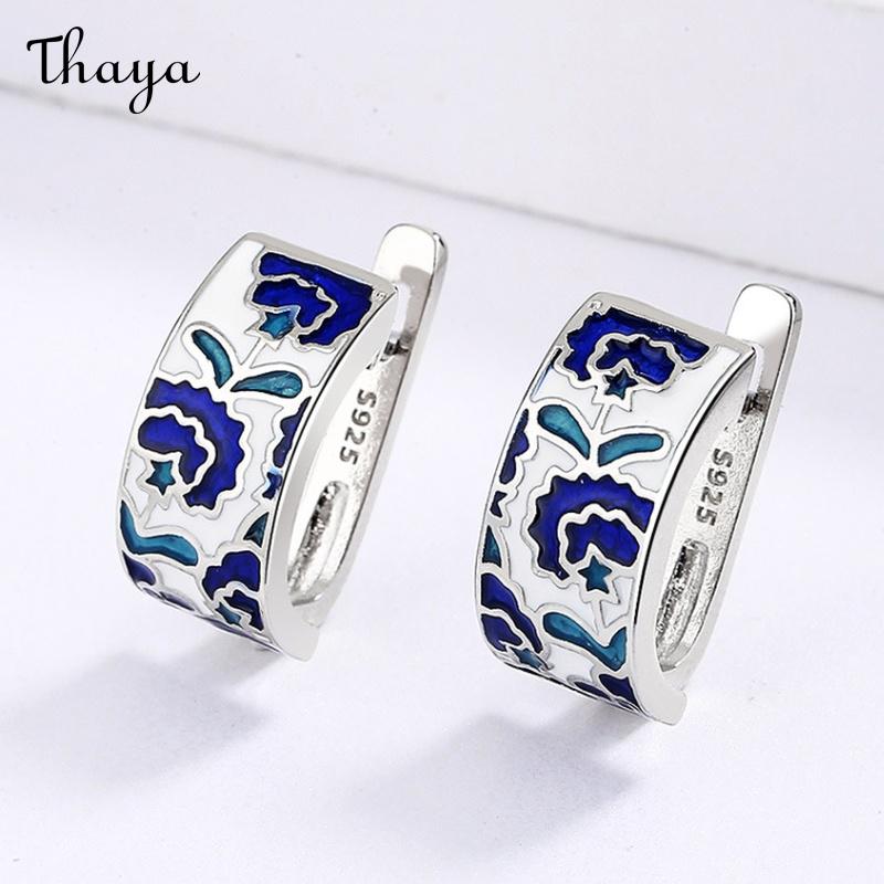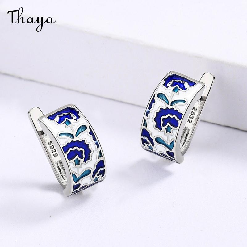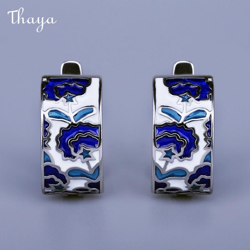 These beautiful earrings feature a rectangular design adorned with intricate floral patterns in shades of blue and white. The enamel work adds a vibrant touch, making them a standout accessory.