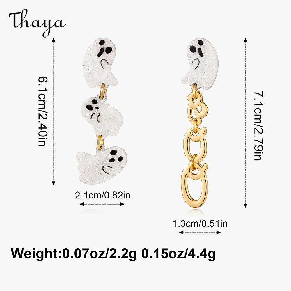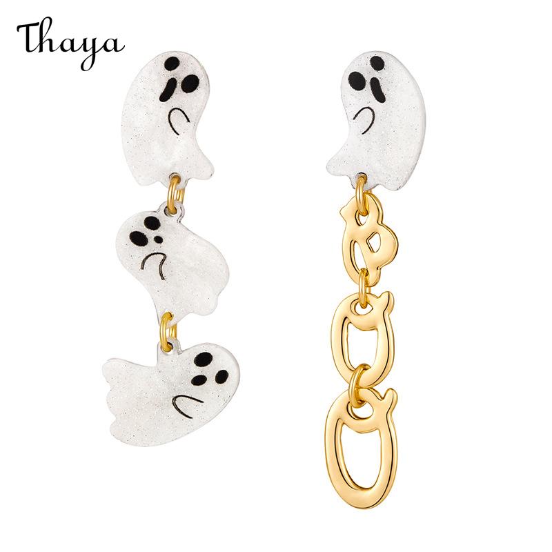 • Design: Asymmetrical design; one earring features stacked ghost charms, the other features the word 'Boo'.