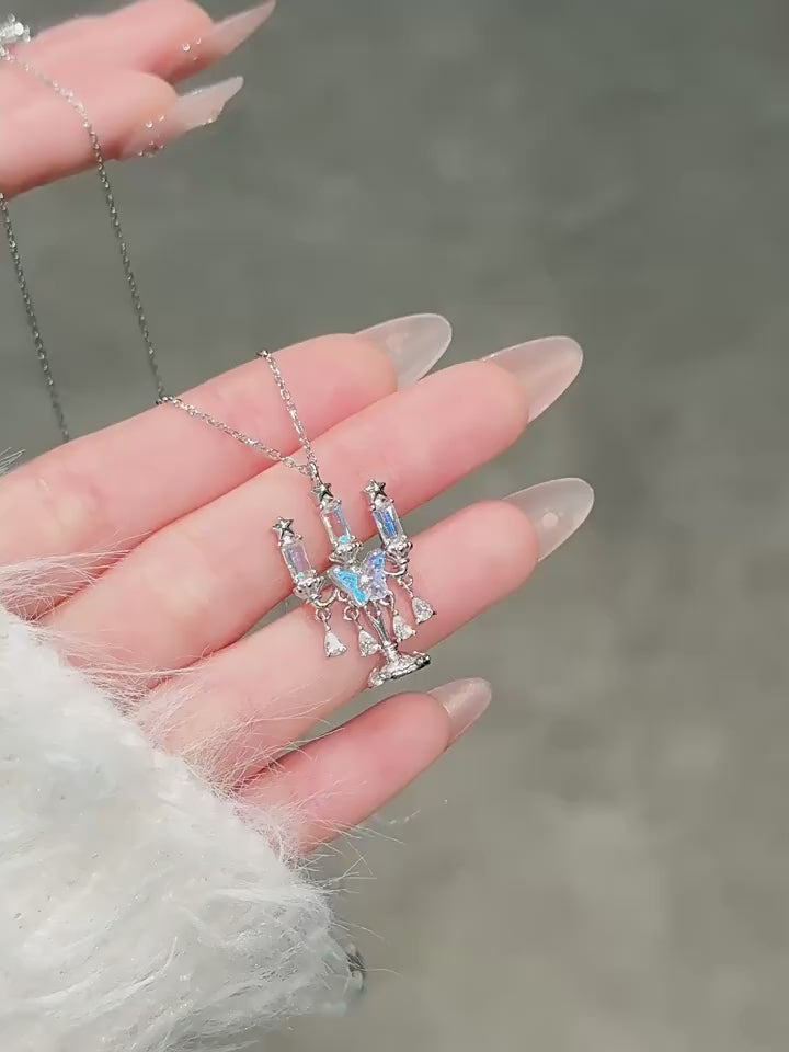 Adorn yourself with this unique and whimsical candelabra necklace.