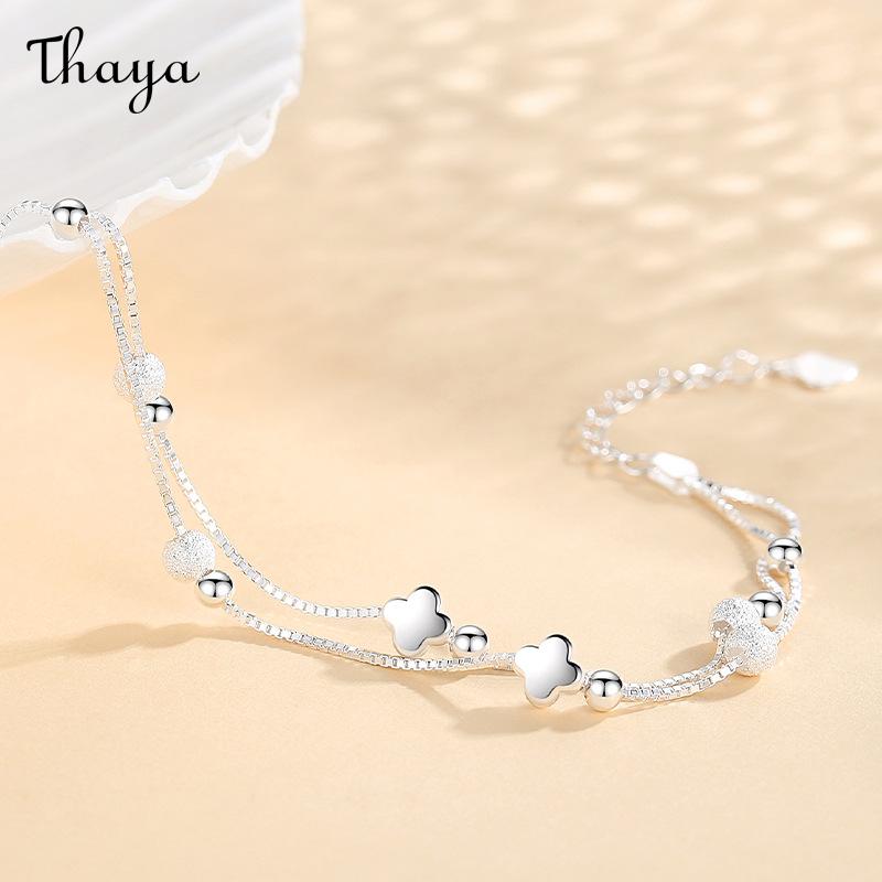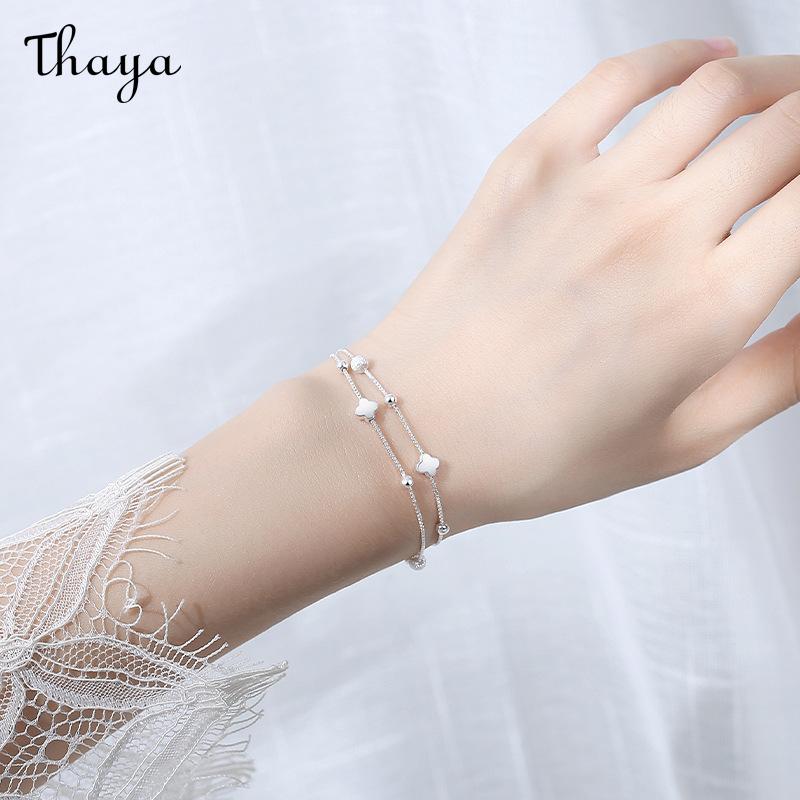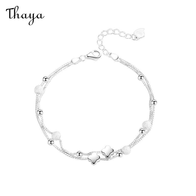- Elegant double-layer bracelet featuring a delicate four-leaf clover design.