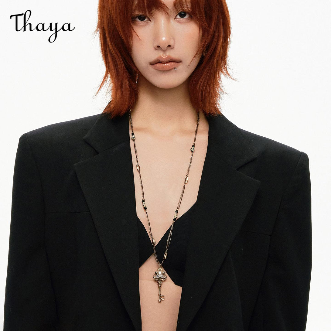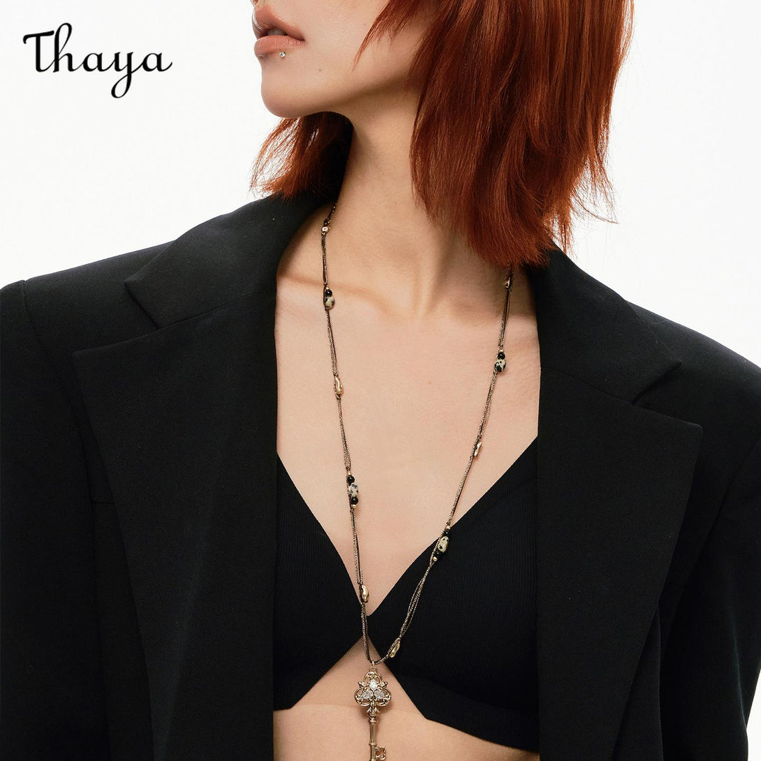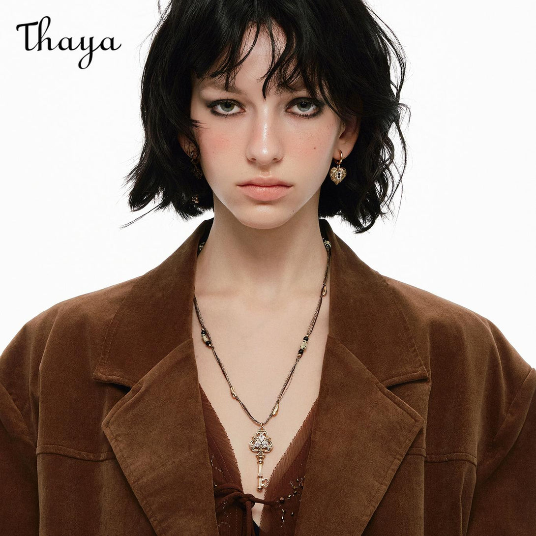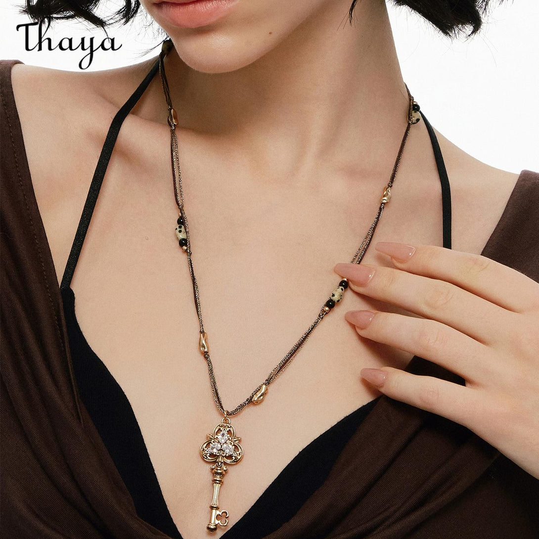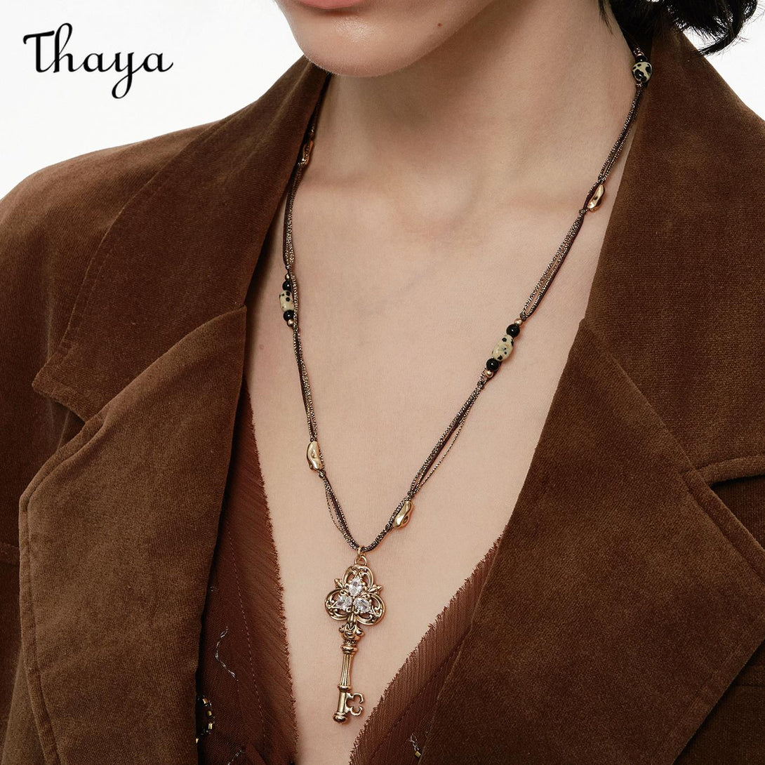 Thaya Love Lock Core Retro Embossed Key Beaded Rope Necklace