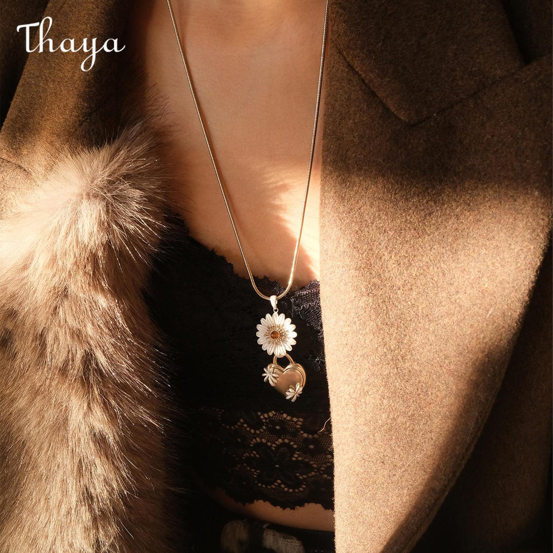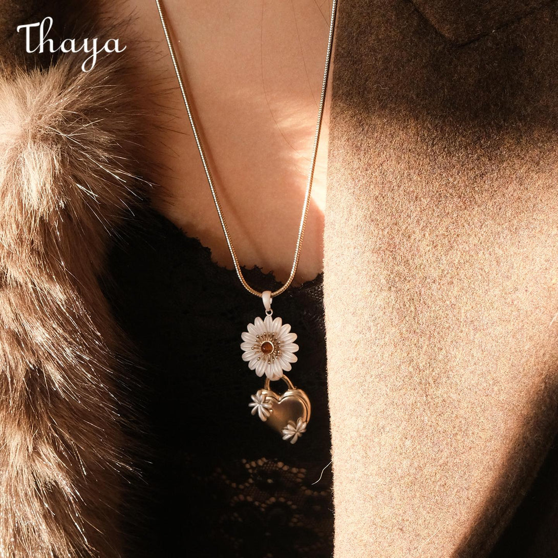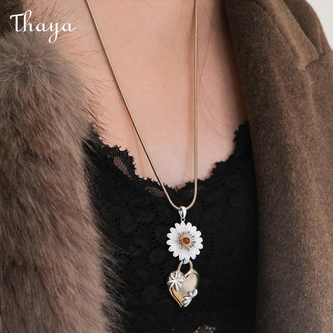 • Design: Combines a white daisy with a golden center and a heart pendant.