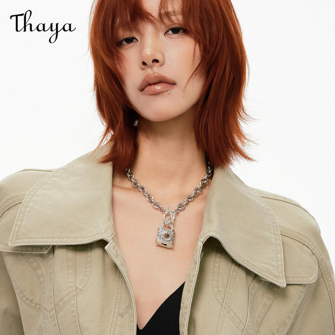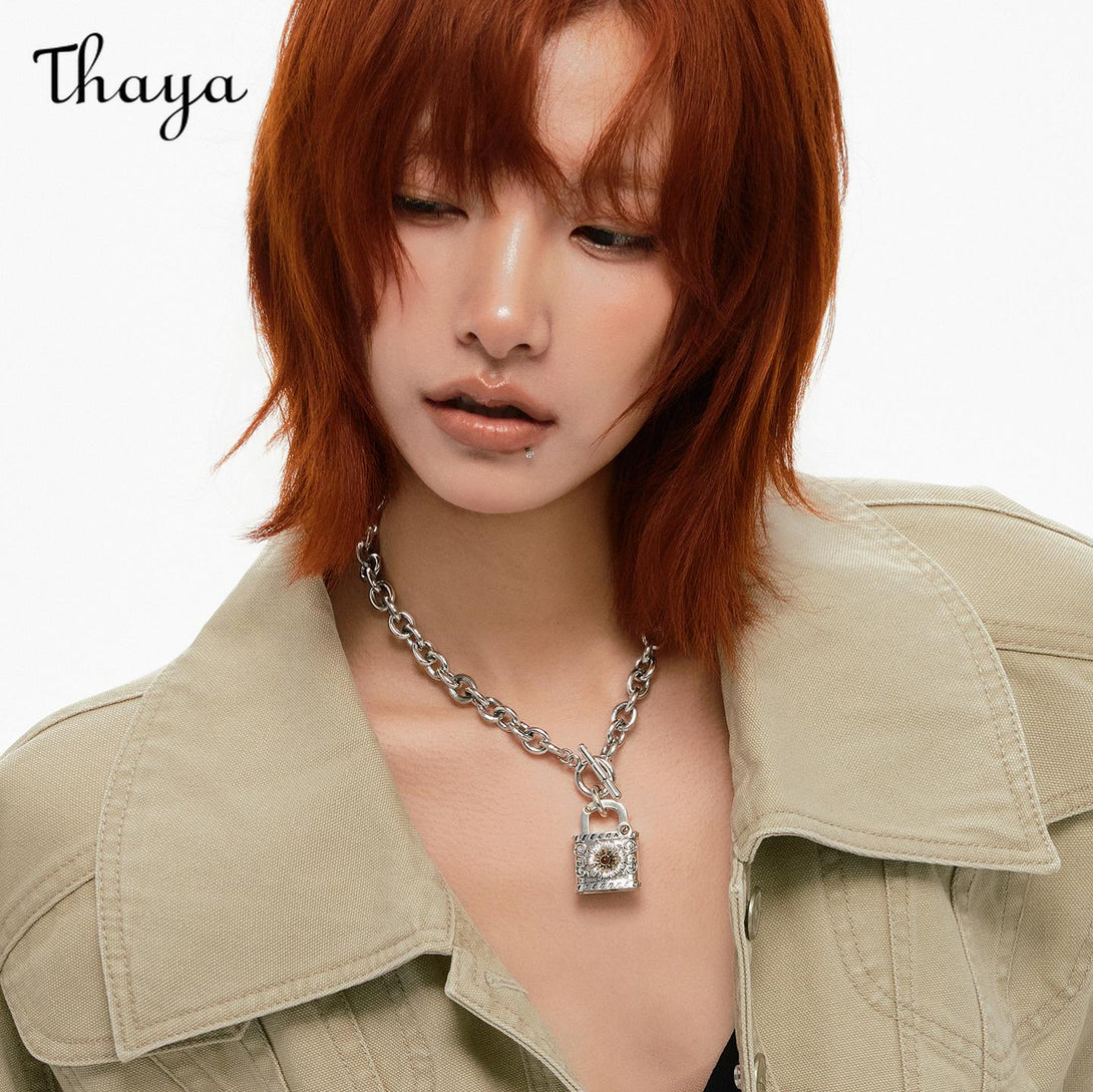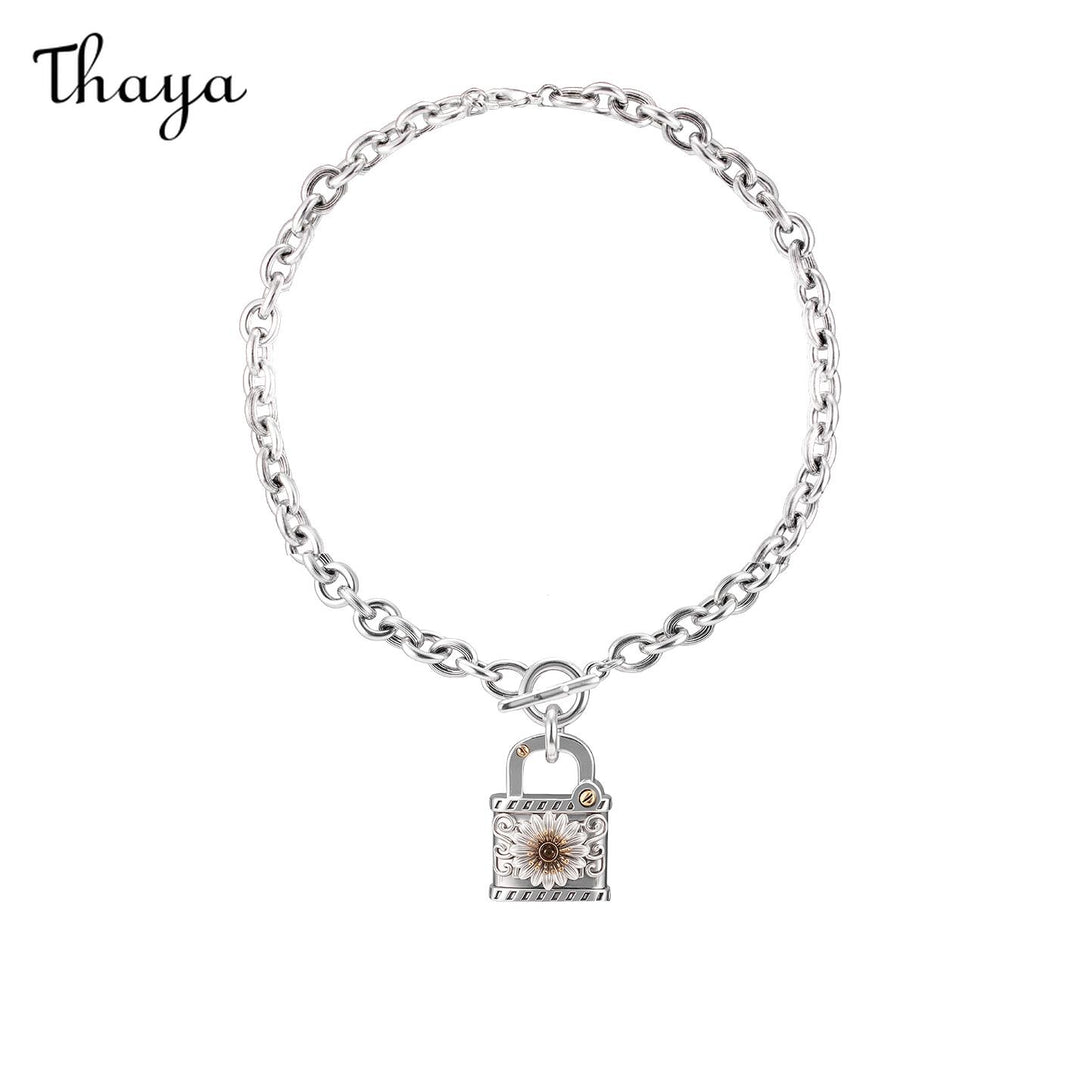 Exaggerated chain necklace featuring a unique daisy lock design and Cuban chain links.