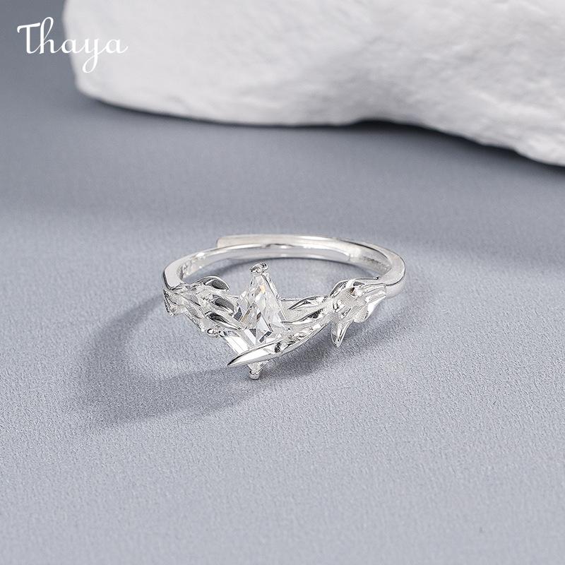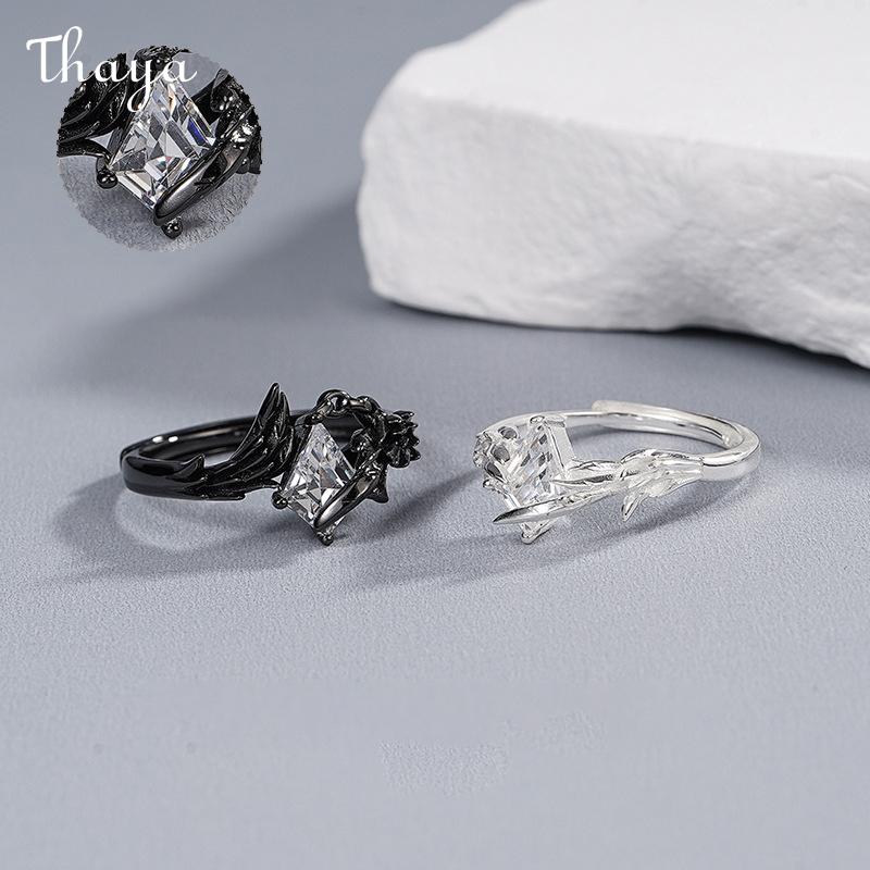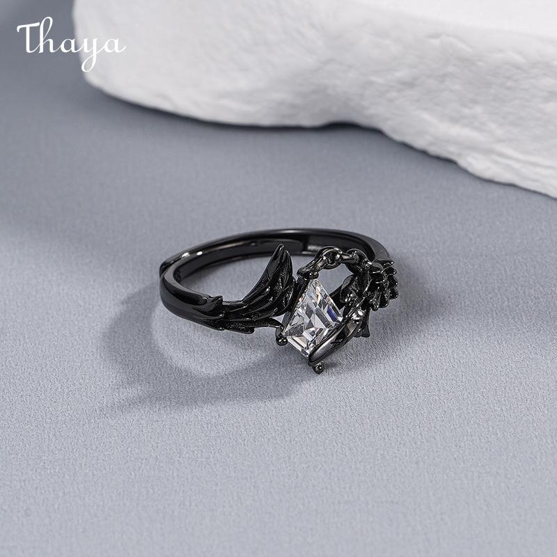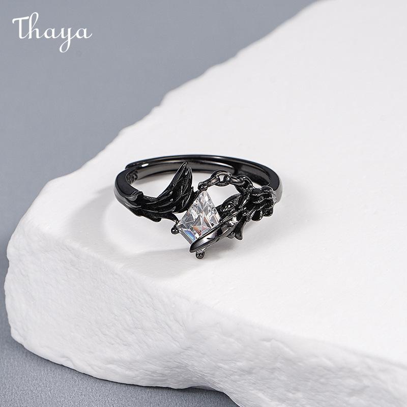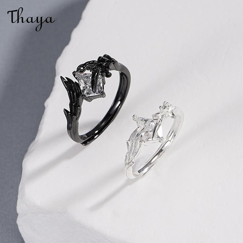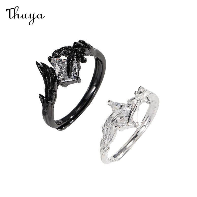Thaya Doves and Crows S925 Silver White Dove Crow Feather Wing Couple Rings