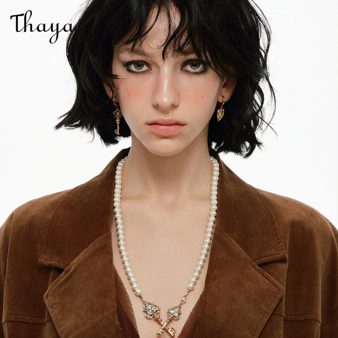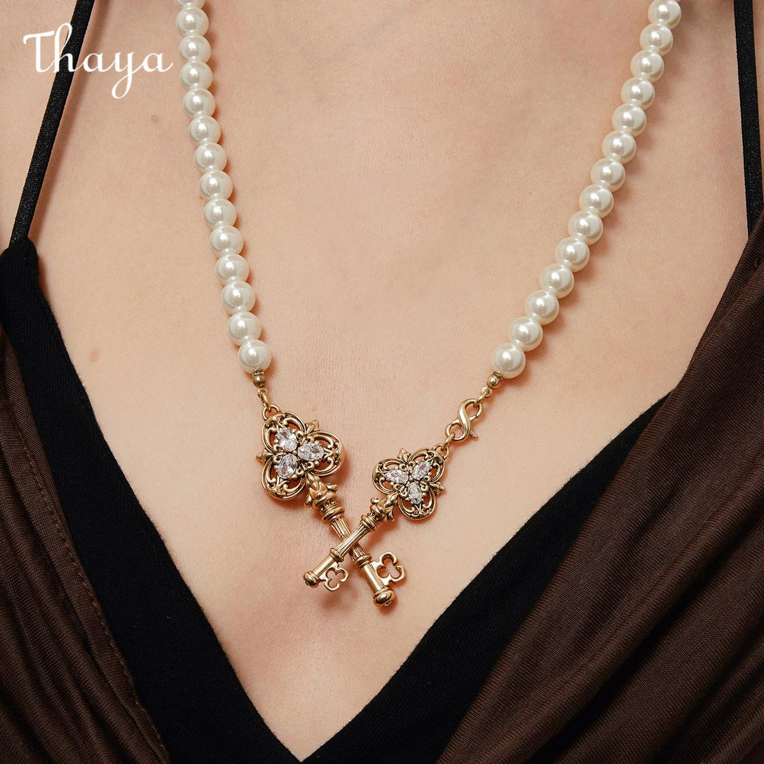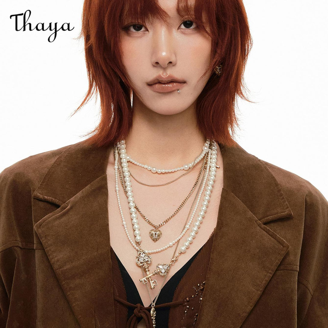 - Design: Multi-layered with varying chain styles and pearl strands.