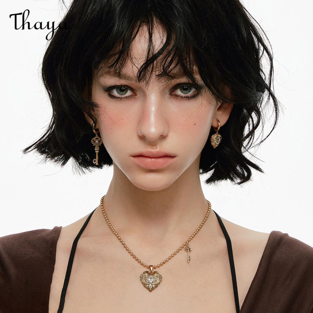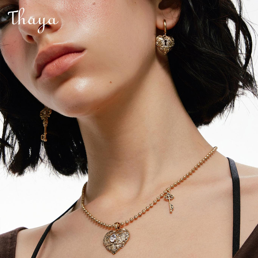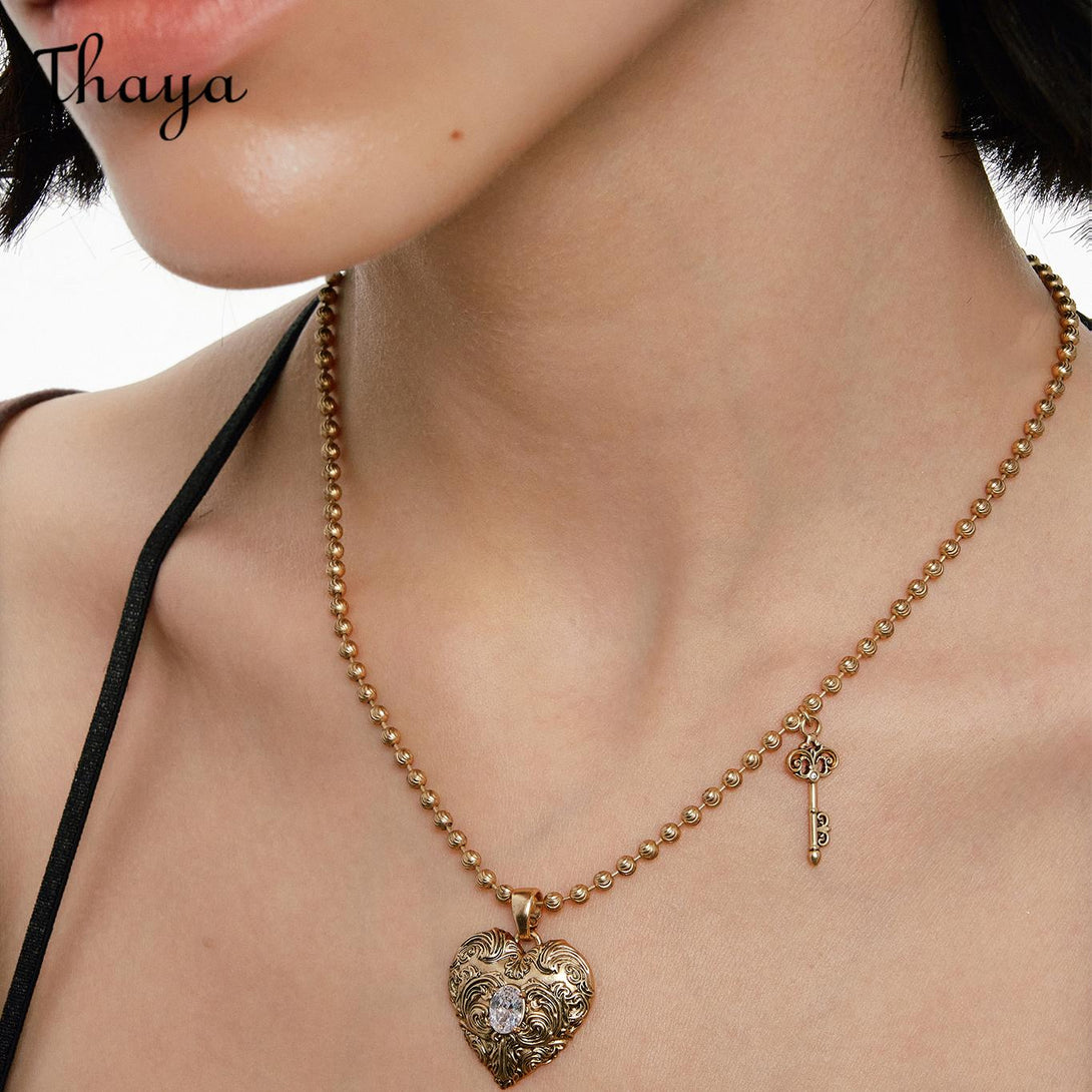 Thaya Vintage Love Lock Core Embossed Heart Necklace