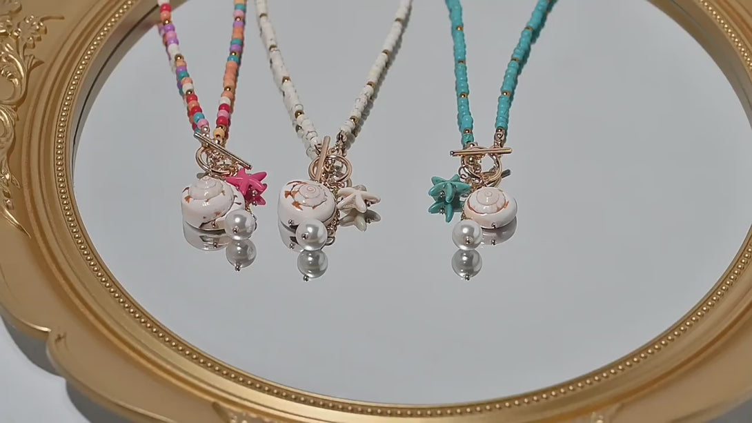 • Charms: Includes a starfish, seashell, and pearl pendant
