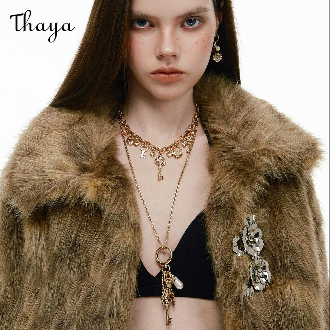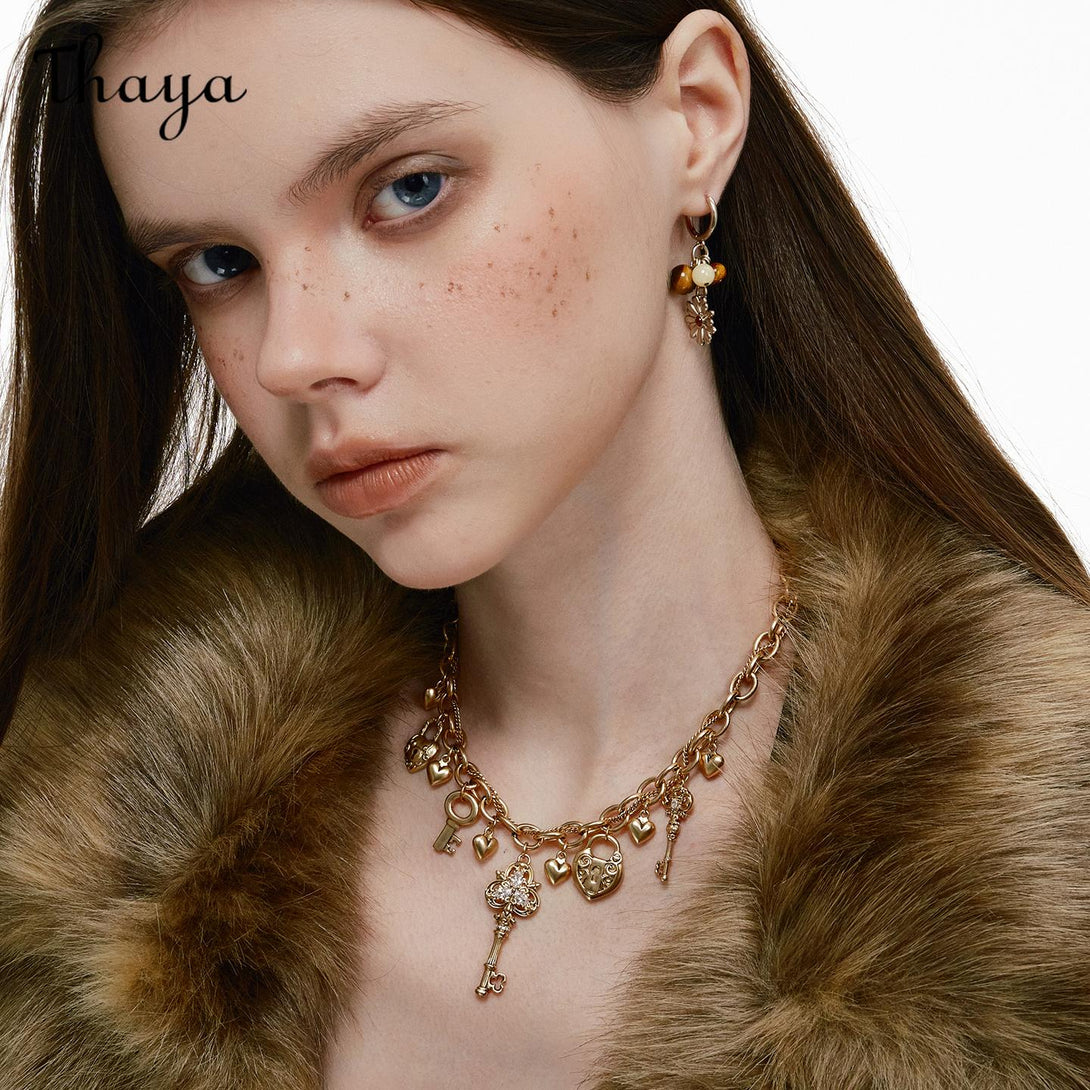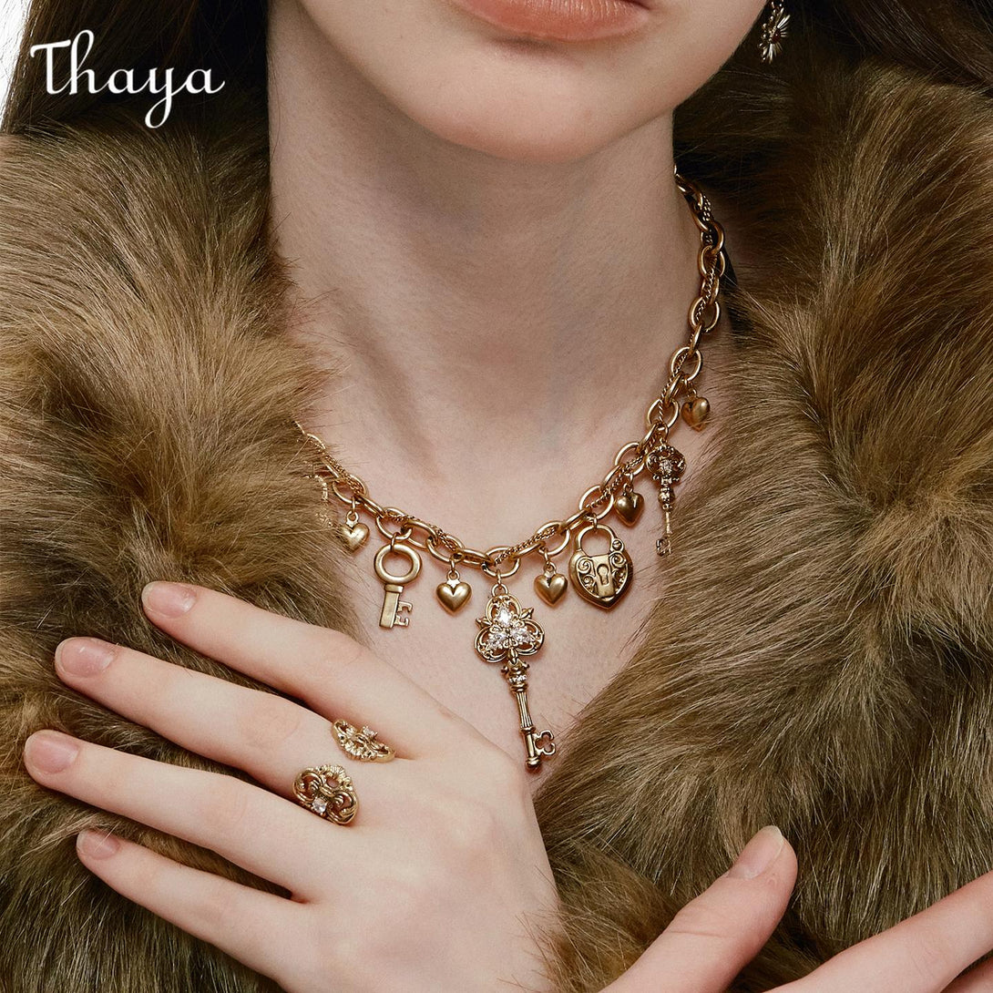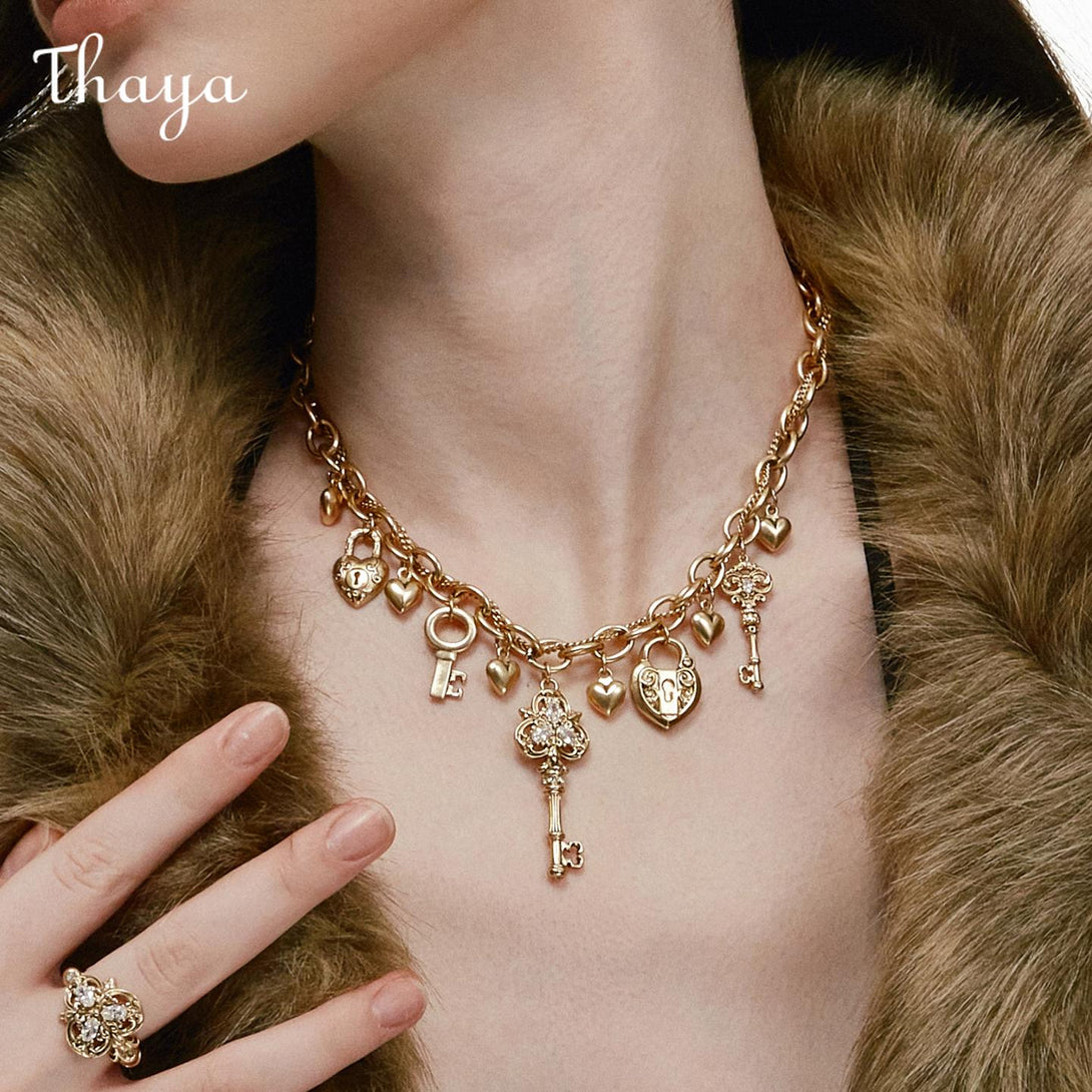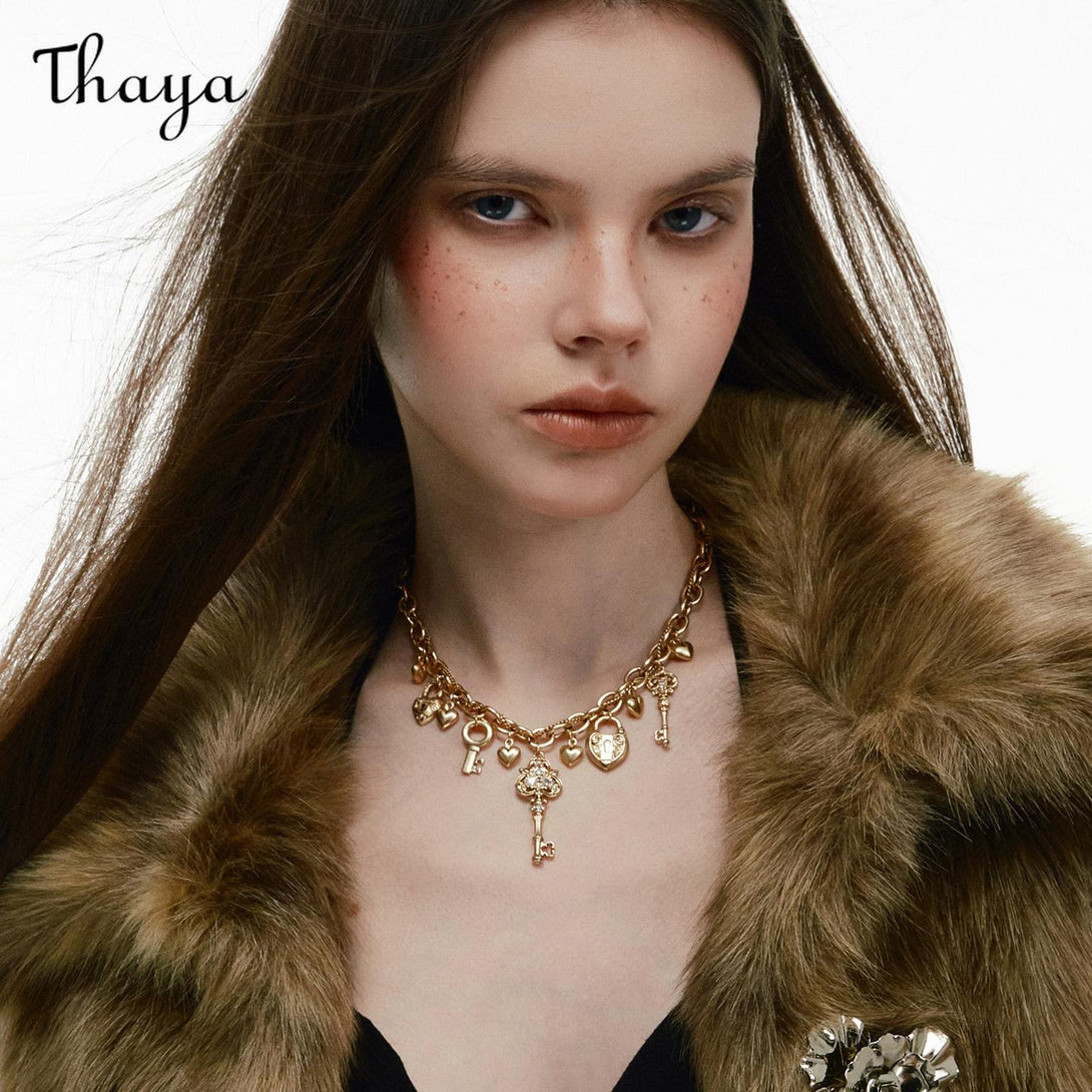 Thaya Love Lock Core Series Vintage Gold Key Pendant Necklace