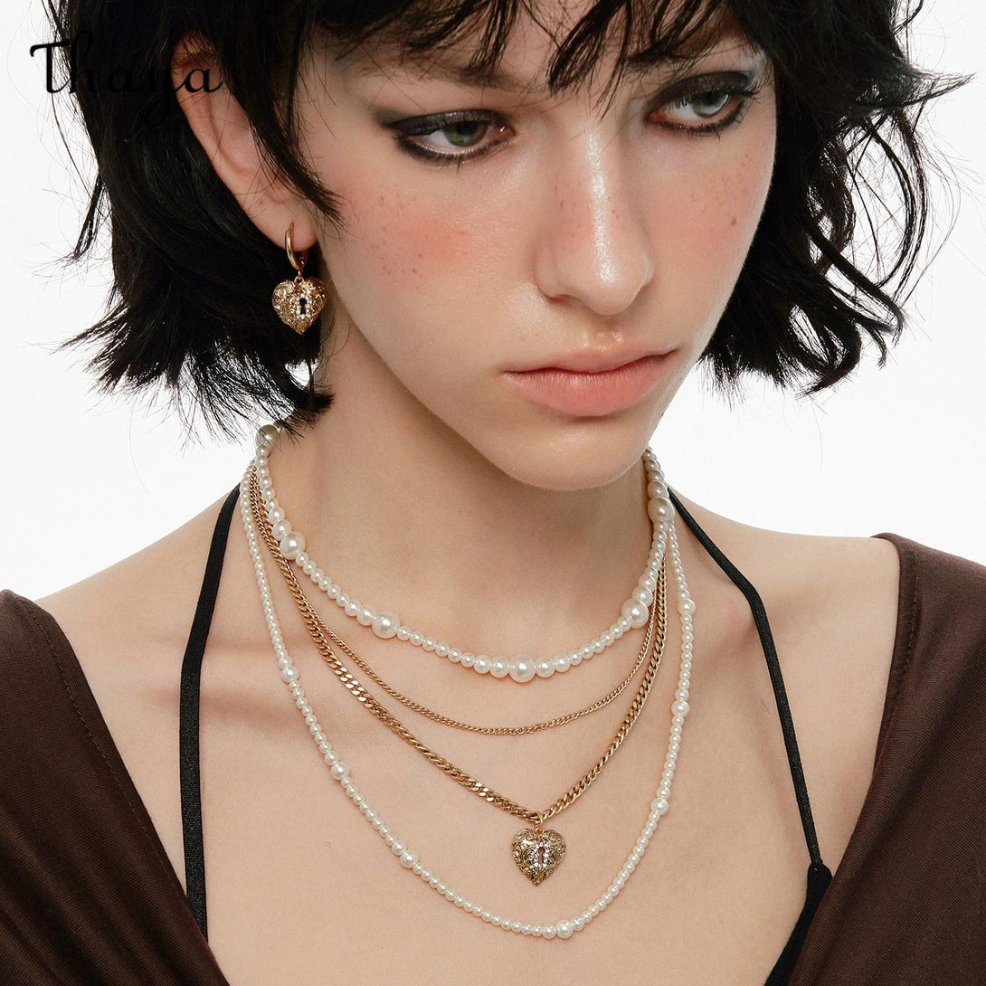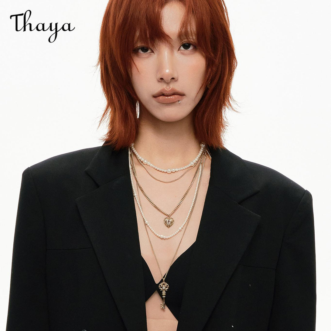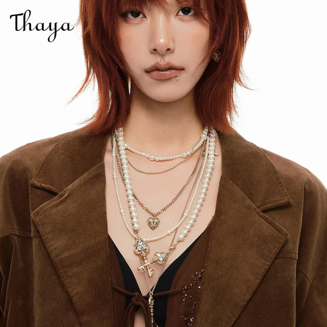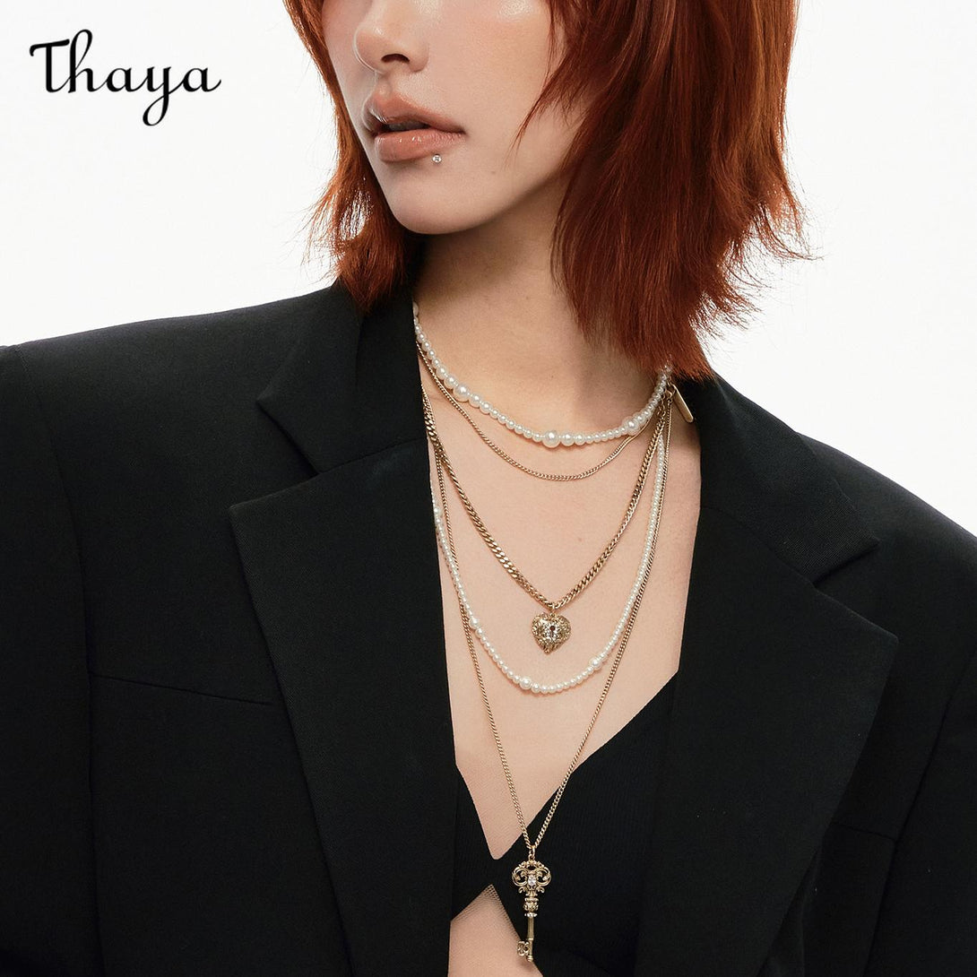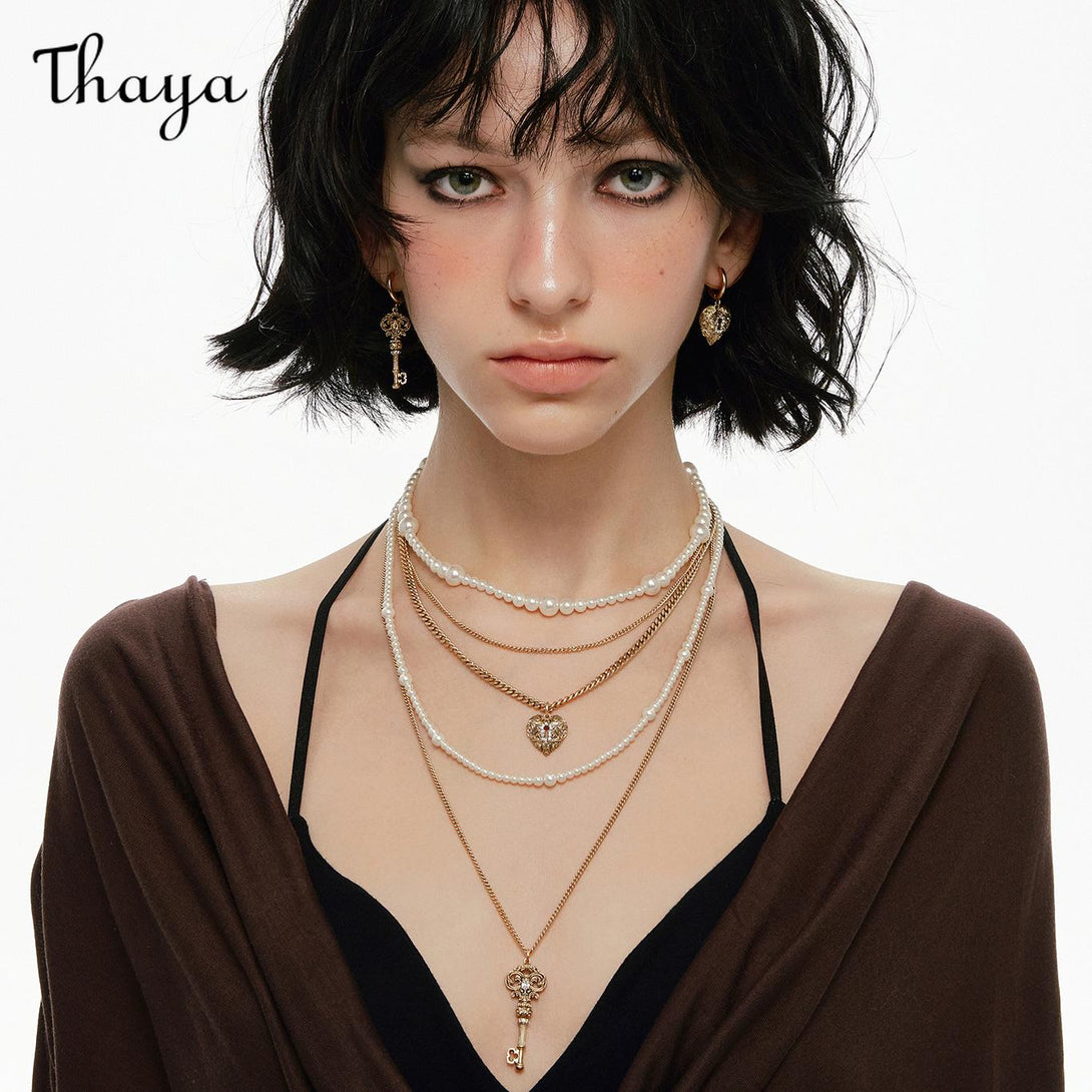Thaya Vintage Love Lock Core Multi-Layer Pearl Necklace( Detachable)