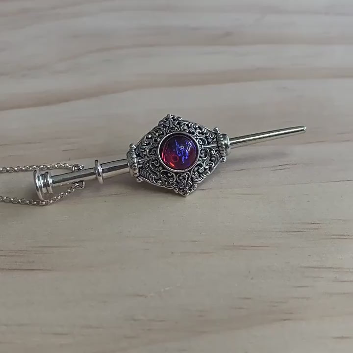 This exquisite necklace features a unique pendant with an eye-catching gemstone set in an intricately designed, vintage-inspired frame. The pendant hangs gracefully from a delicate chain, making it a perfect statement piece.