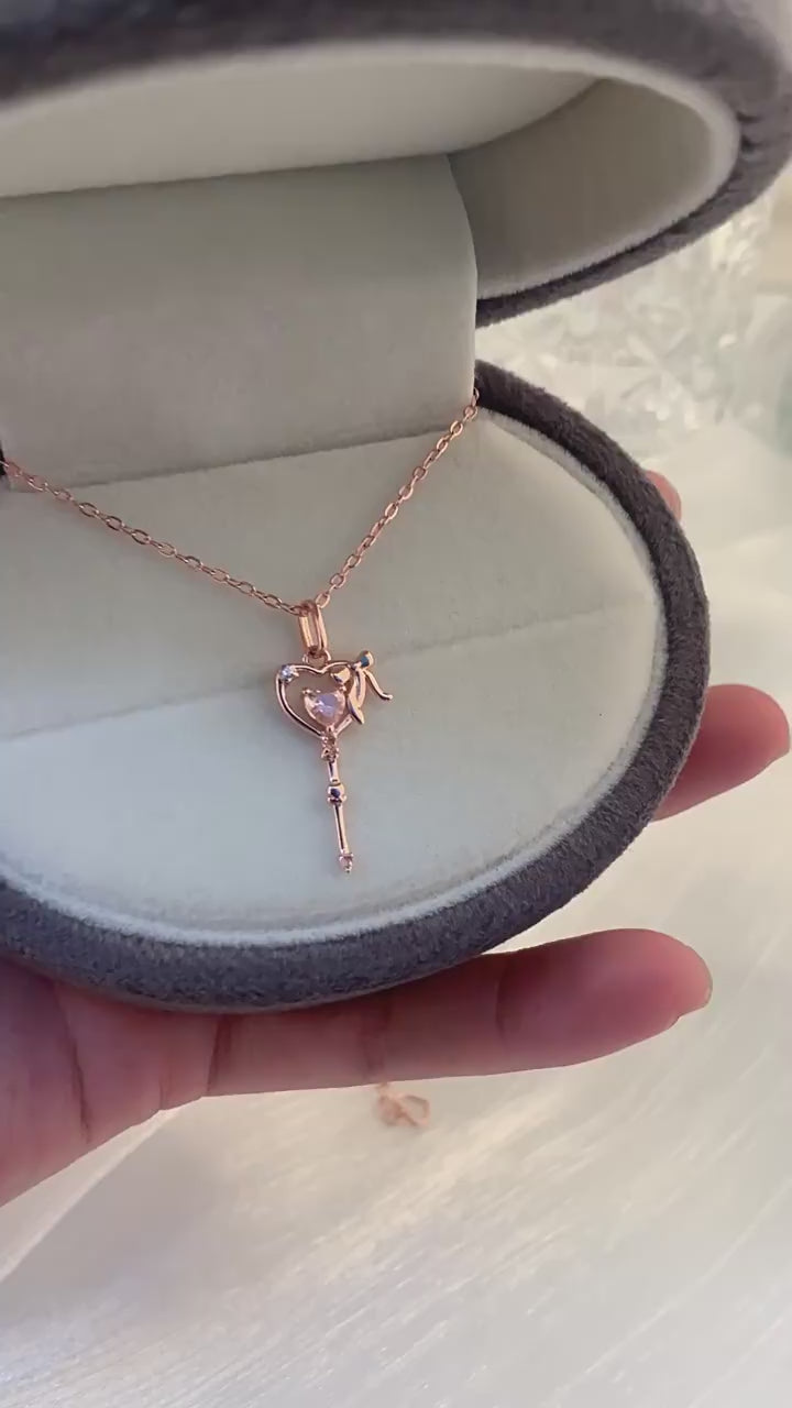 This charming necklace features a heart-shaped pendant with a unique design. The pendant showcases a heart lock design accented with sparkling zircon stones.