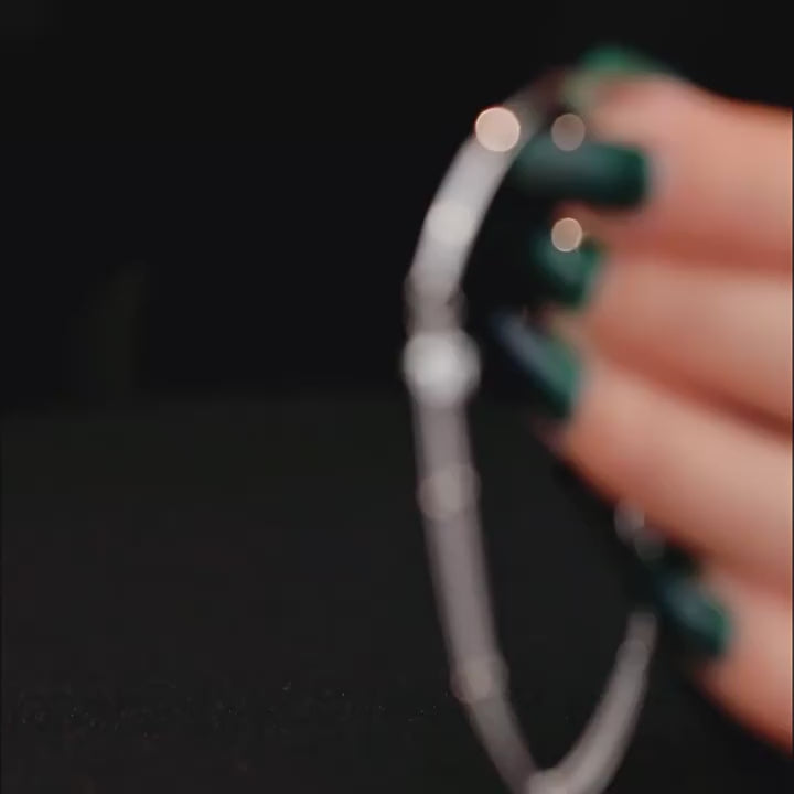 Fabriqué en argent sterling pur, ce superbe bracelet Dazzling Uneven Star incarne le symbolisme profond des étoiles, représentant les rêves, l'orientation et la résilience. Chaque maillon élégant raconte une histoire d'aspiration, encourageant les porteurs à atteindre leurs rêves tout en embrassant leur force intérieure. Une pièce intemporelle avec une signification illimitée ; elle brille vraiment sur n'importe quel poignet.