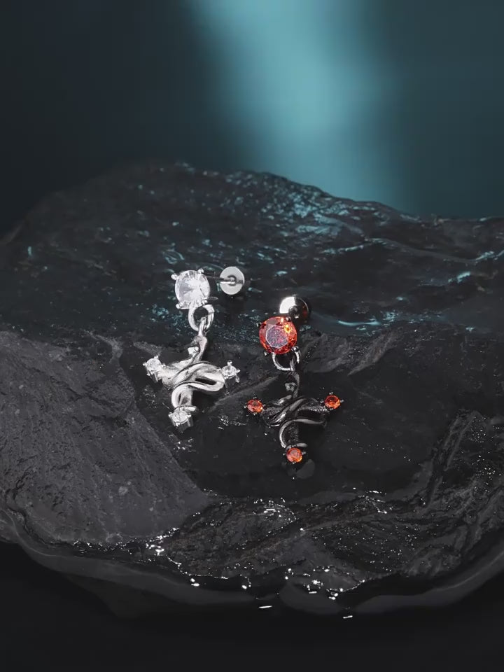 Add a touch of gothic elegance to your look with these unique earrings. Each earring features a cross design intertwined with a snake, creating a striking and symbolic piece of jewelry.