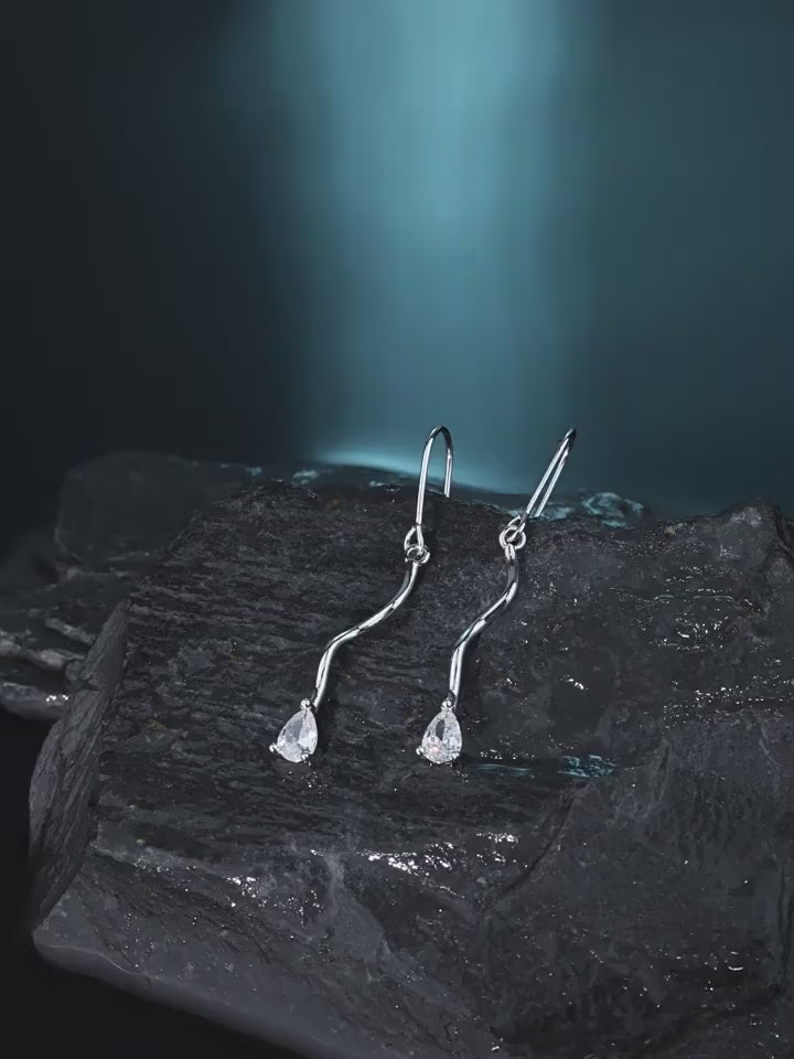 These chic drop earrings feature a delicate chain and a unique wave-shaped design that leads to a shimmering teardrop zircon at the end. Their minimalist style adds a touch of elegance to any look.