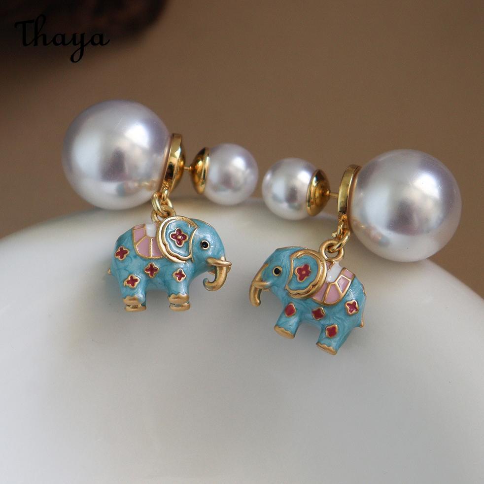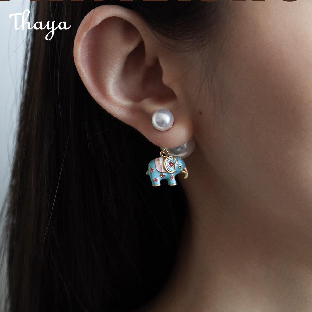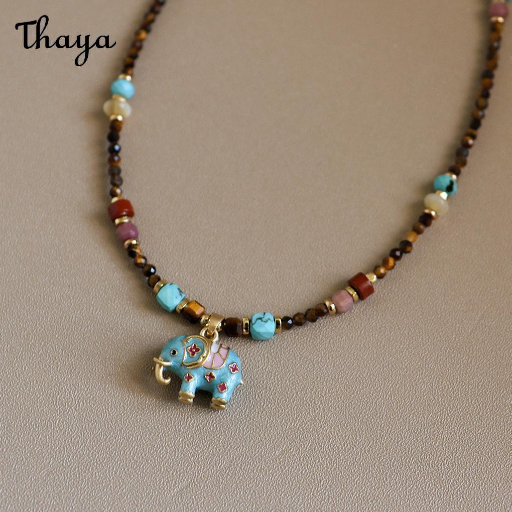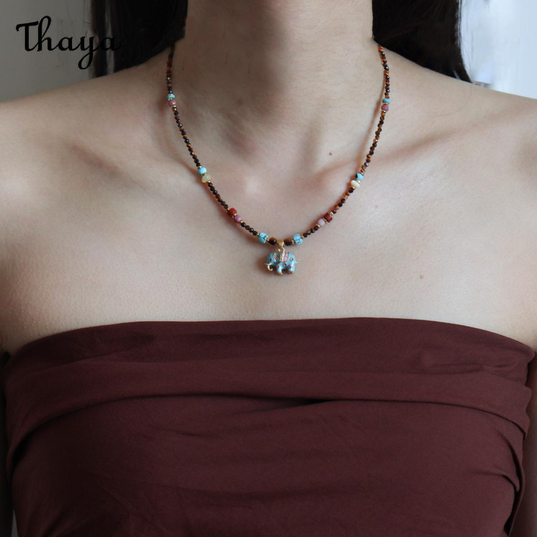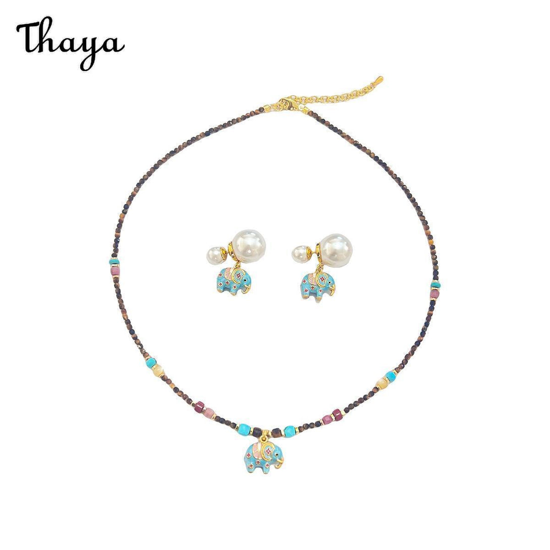 Thaya Elephant Tiger Eye Turquoise Pearl Necklace &Earrings