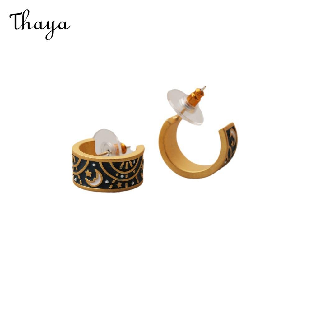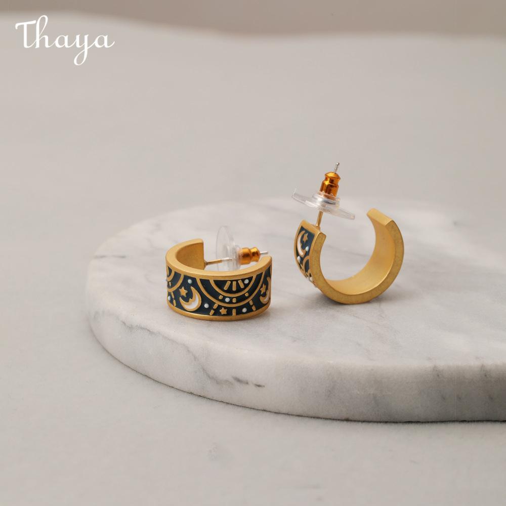 Thaya Gold-Tone Moon & Star Hoop Earrings
