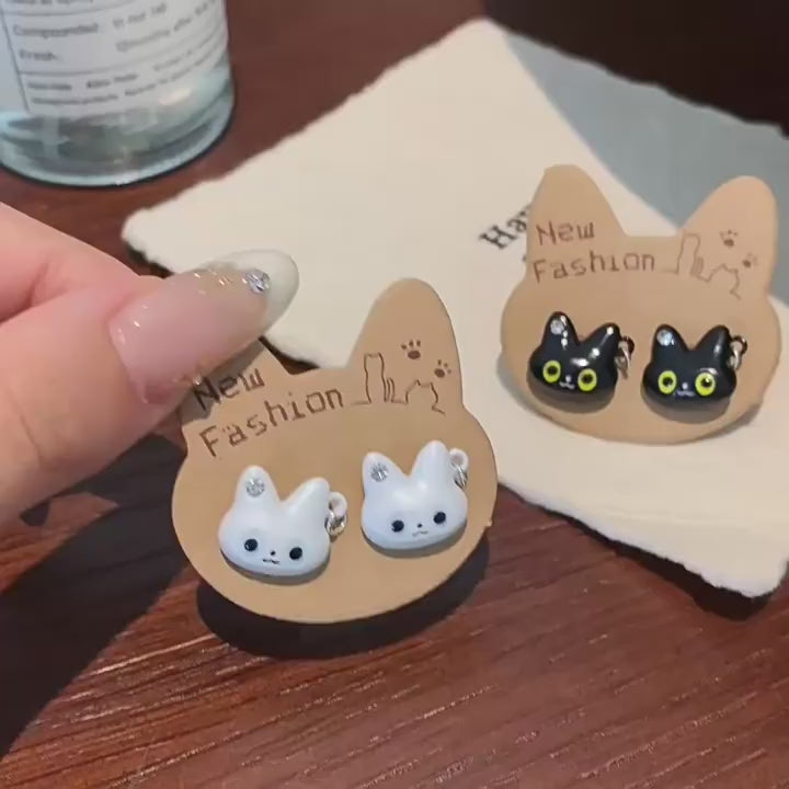 - Design: Cute cat-shaped studs with detailed facial features.