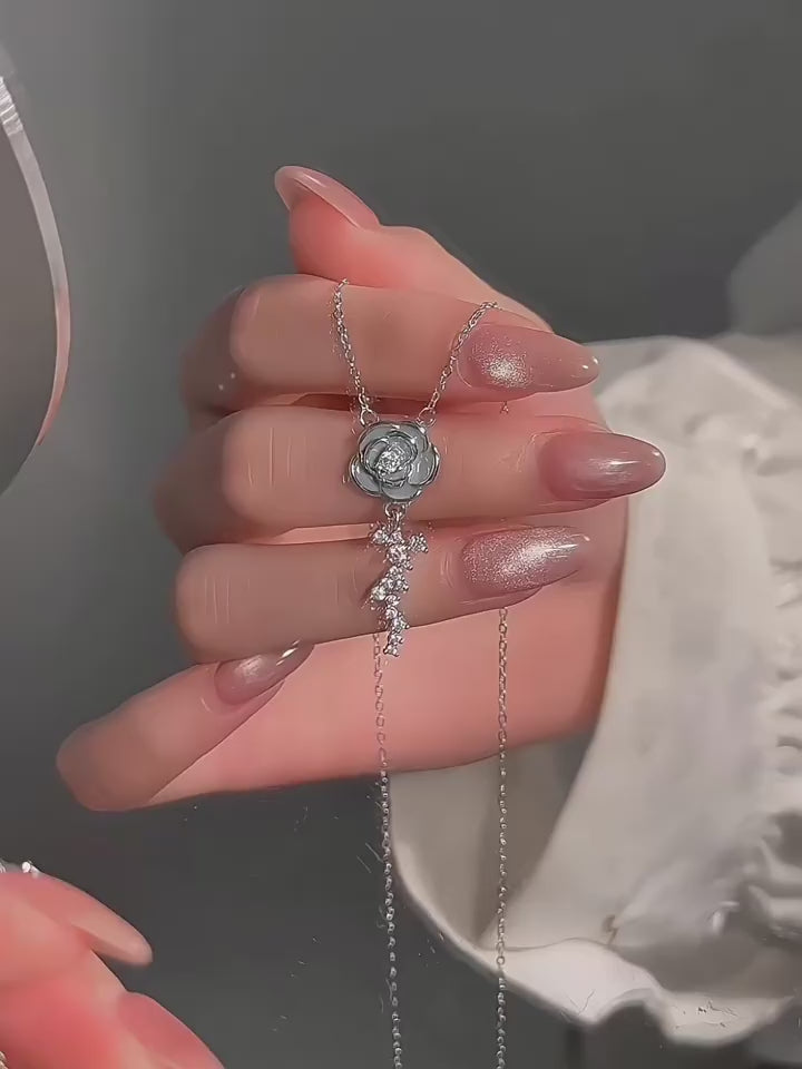 This captivating necklace features a delicate rose pendant design,exudes a fresh and elegant style. Adorned with shimmering stones, adding a touch of sparkle to any outfit.