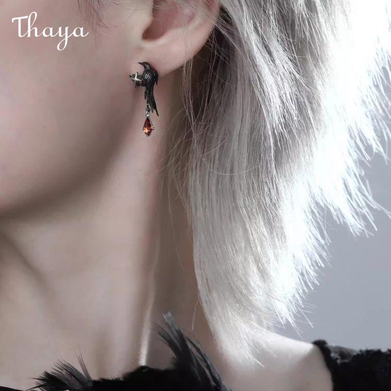 color: ED808 Crow Ear Studs One Left [Red Diamond]