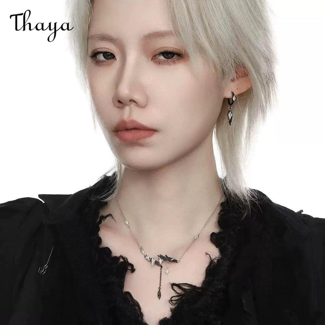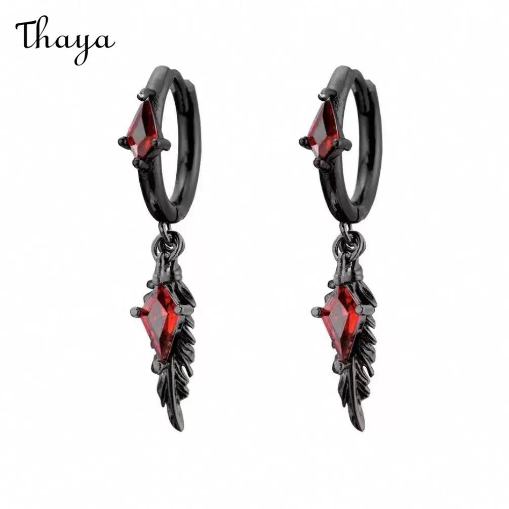 • The hoop earring features a similar diamond-shaped crystal linked to a dark wing accent,creating a cohesive and stylish design.