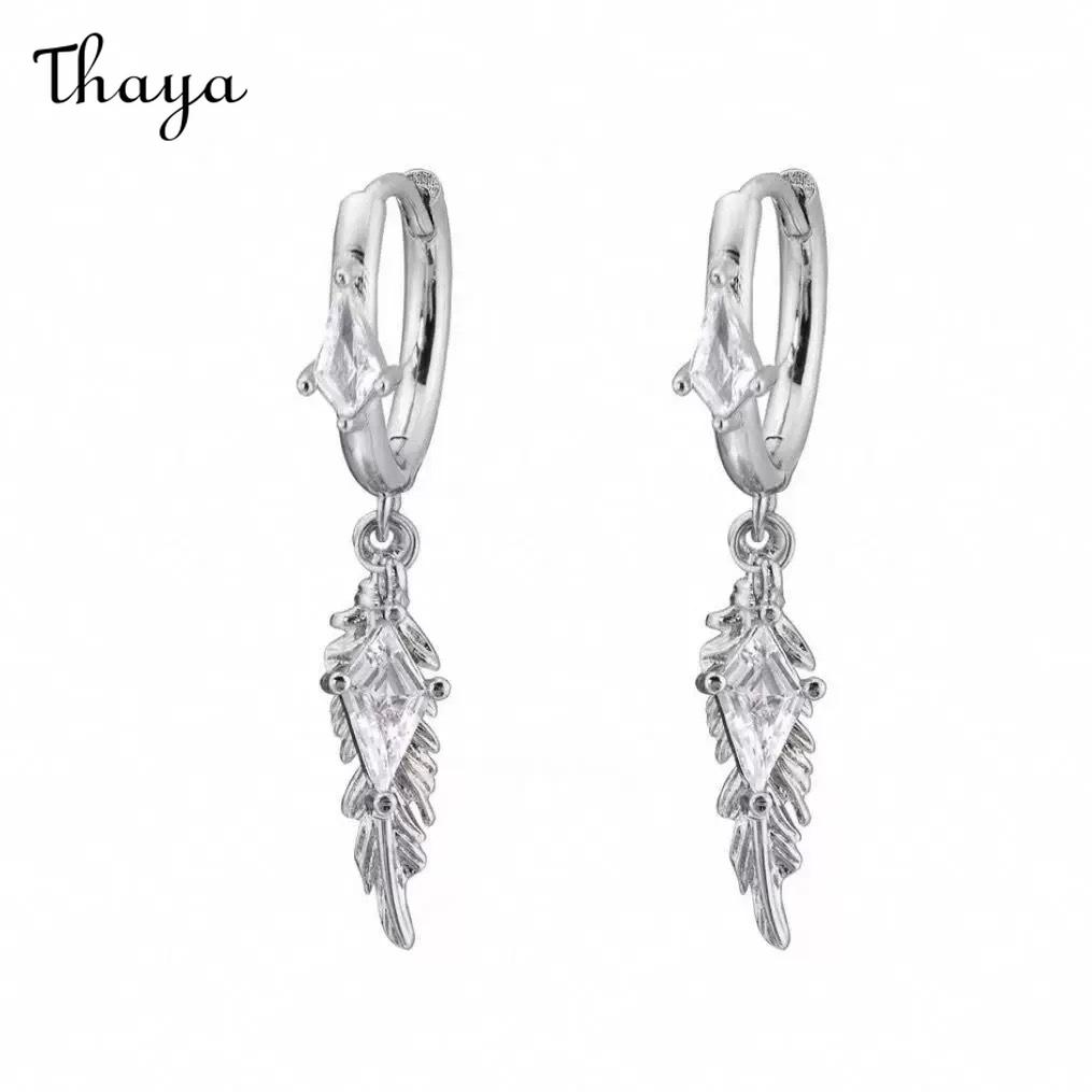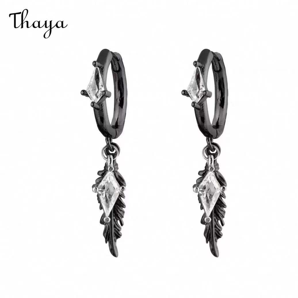 Thaya Dark Wing Feather Crystal Dangle Earrings