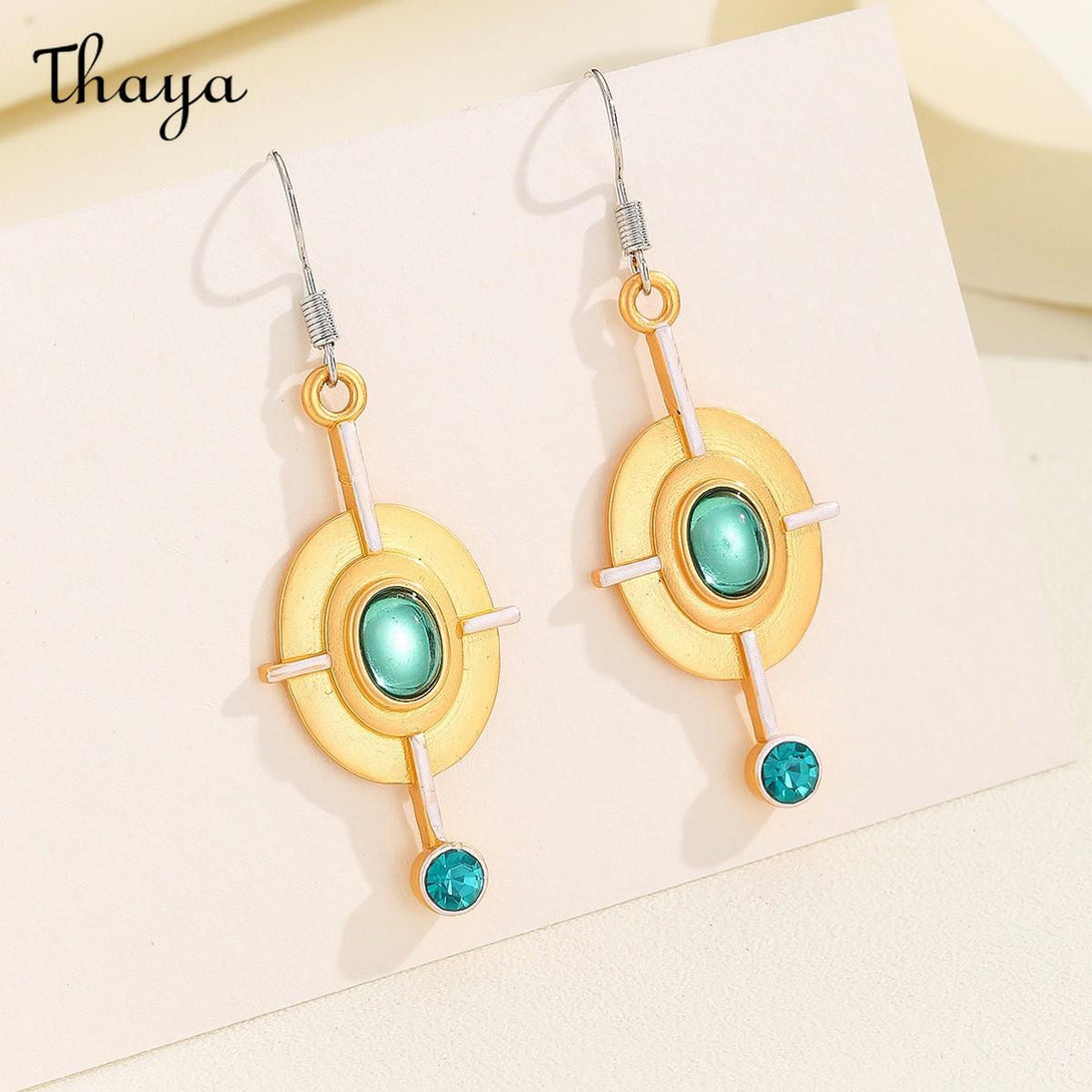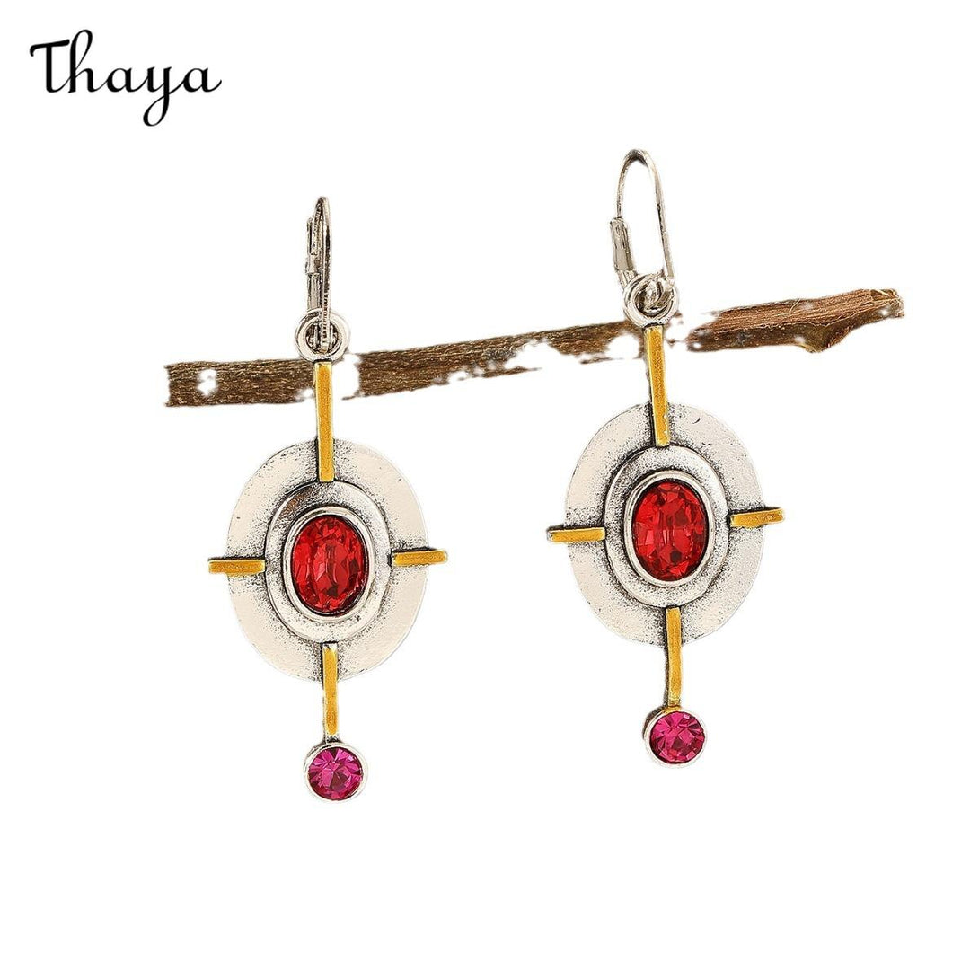 Elevate your style with these eye-catching dangle earrings. Featuring a geometric design with a circular stud, accented by a vibrant pink stone, these earrings are sure to make a statement.