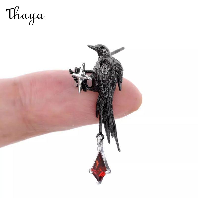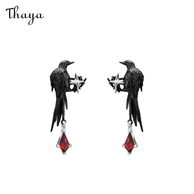 Embrace the mystique with these captivating raven drop earrings. Featuring a detailed raven design clutching a small star, from which a delicate, shimmering crystal dangles.