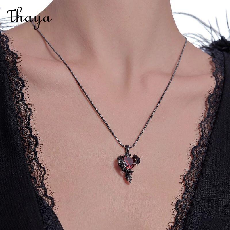 Embrace the allure of mystery with this striking raven pendant. A bold statement piece, this necklace features a intricately detailed raven design clutching a vibrant, heart-shaped gemstone.