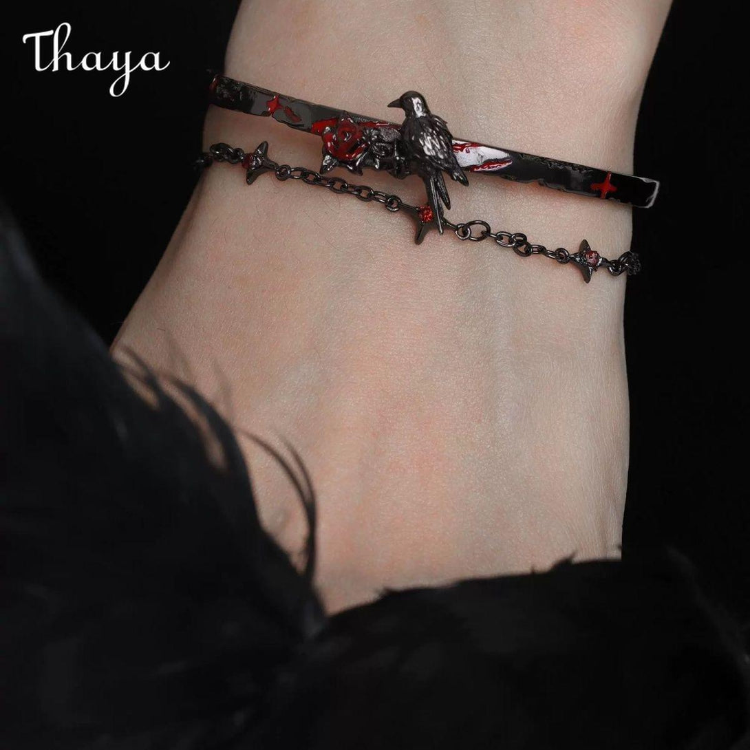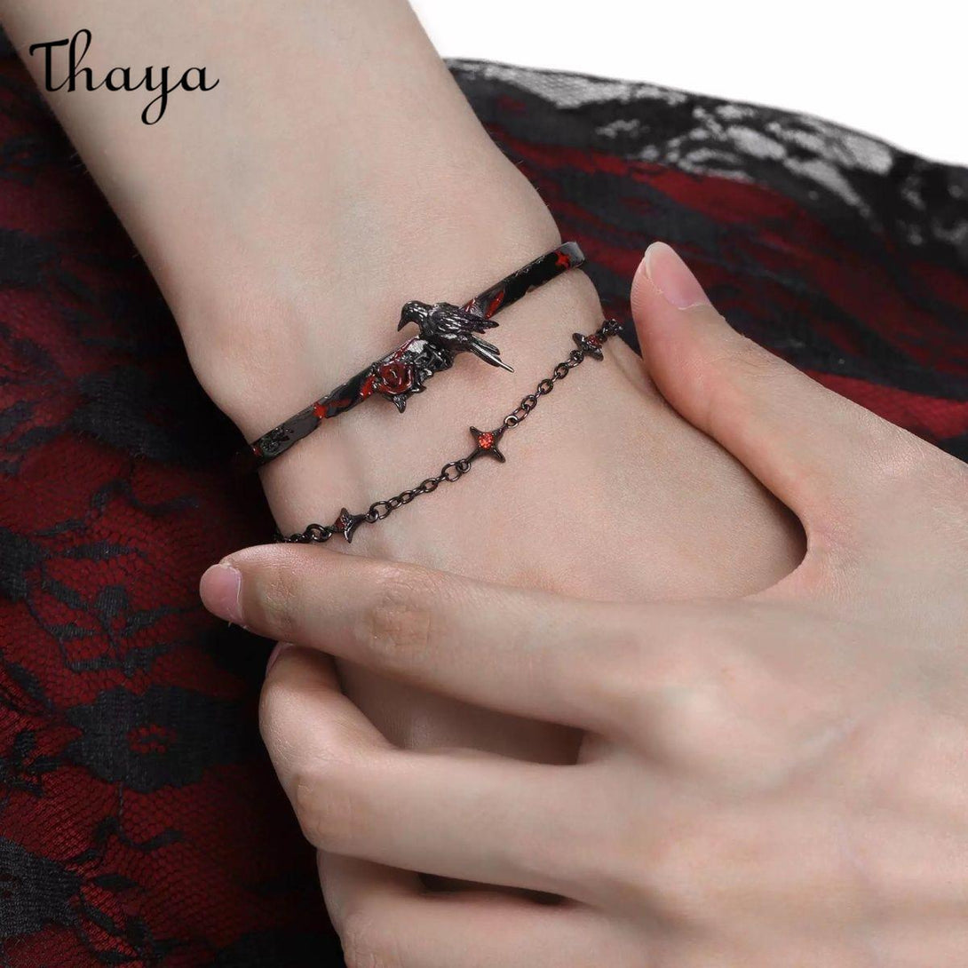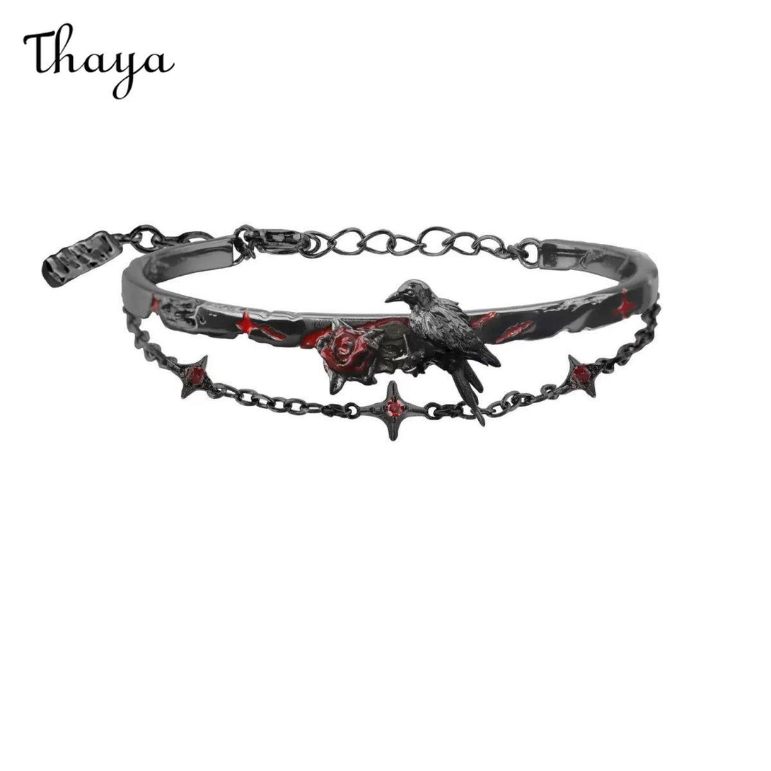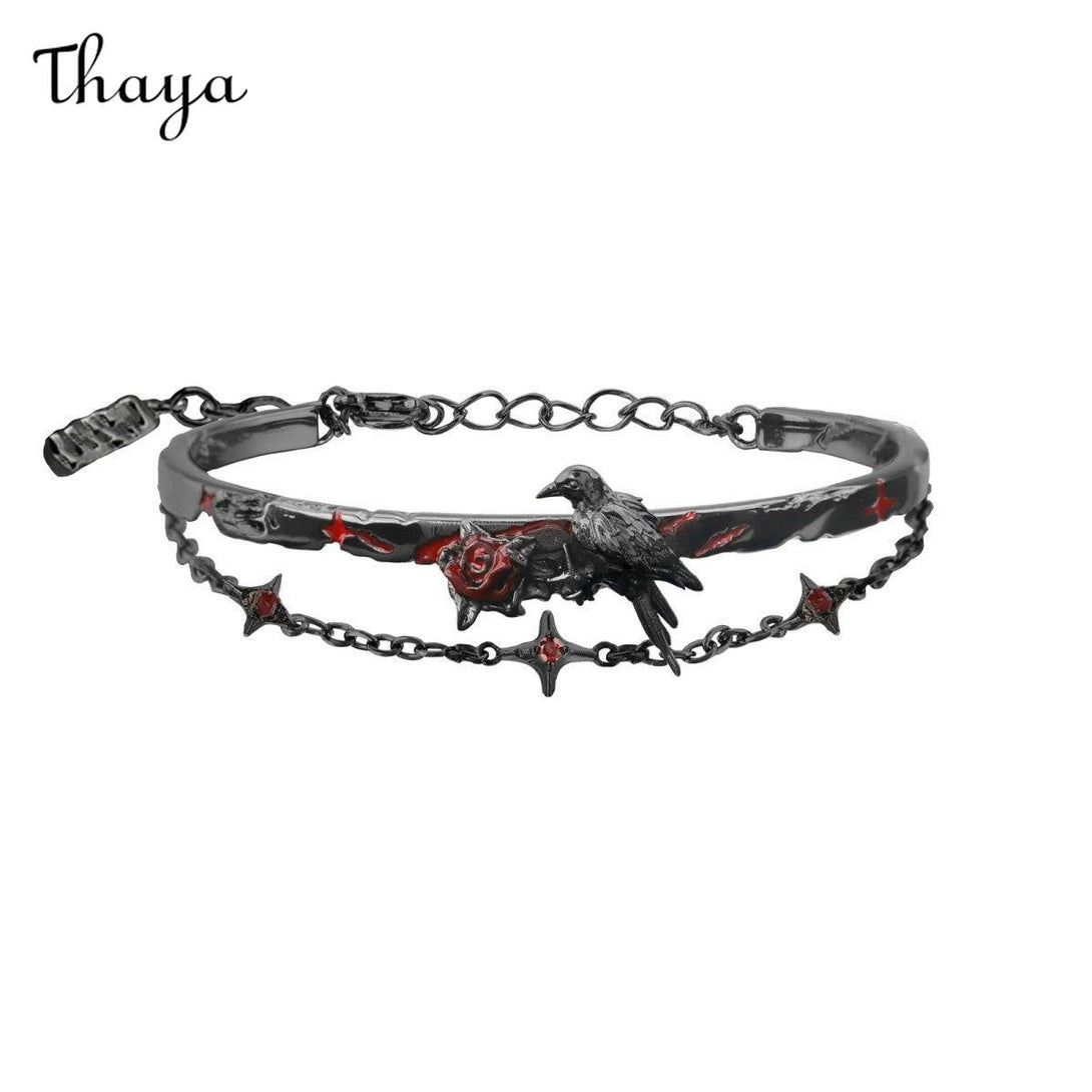 Thaya Dark Crow & Rose Double zxcfgj4578- Layered Bracelet