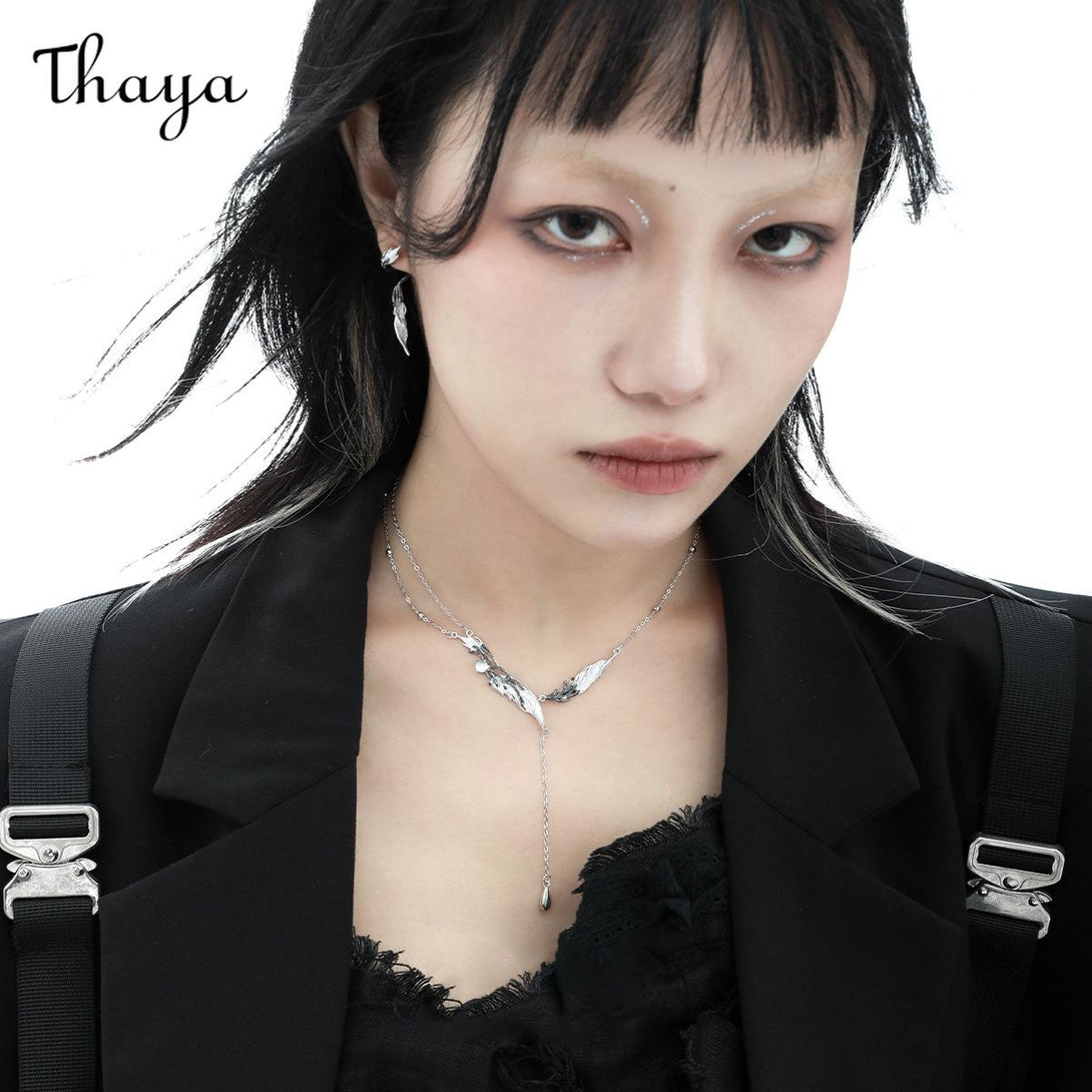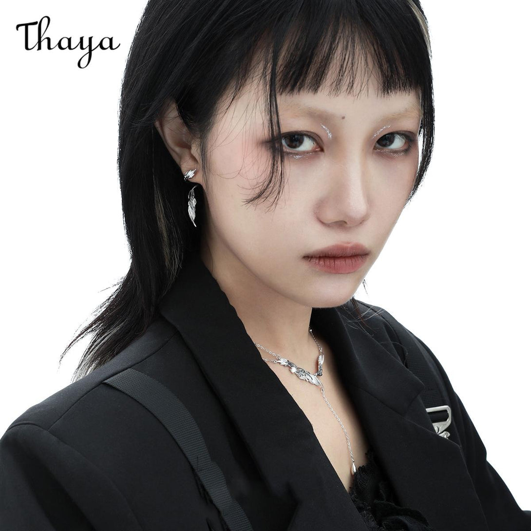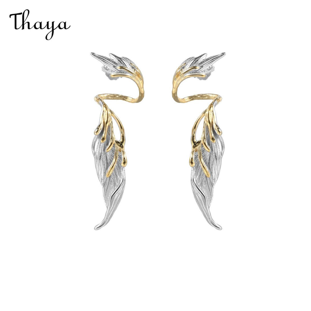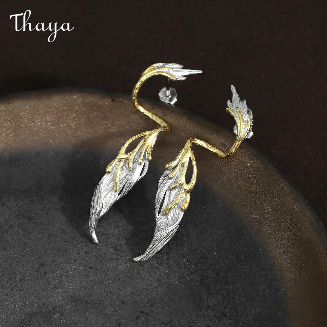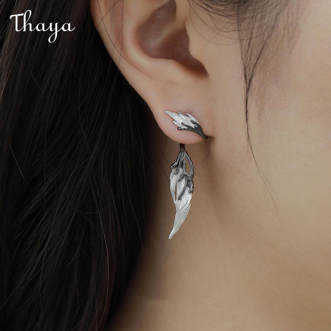 Thaya S925 Silver Wings Feather Drop Earrings