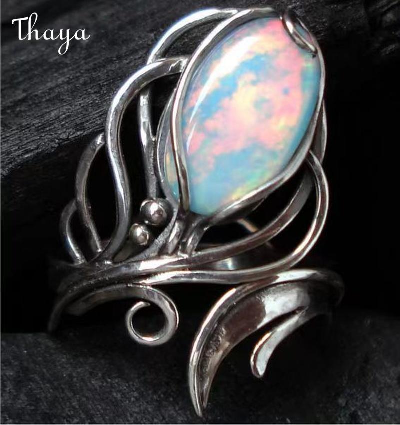 • Design: An elegant leaf-inspired setting cradles the opal, with swirling silver accents adding a touch of organic flair.